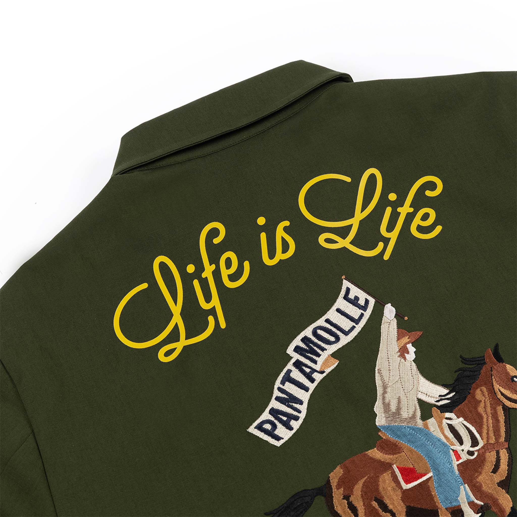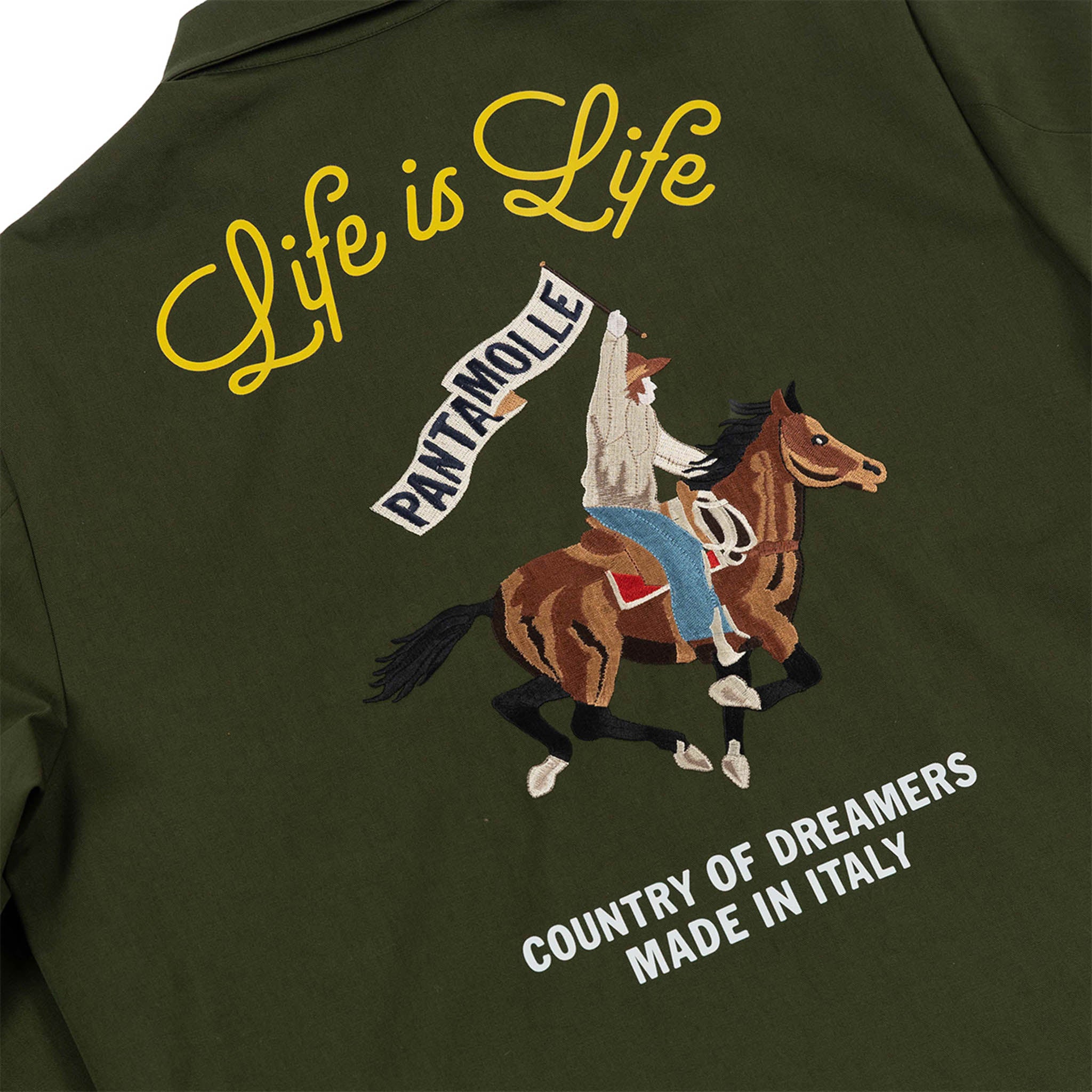 Questo capo rappresenta l'emblema dello spirito country di Pantamolle. Realizzata in cotone, questa giacca foderata dal taglio essenziale, è arricchita da stampe e ricami esclusivi.