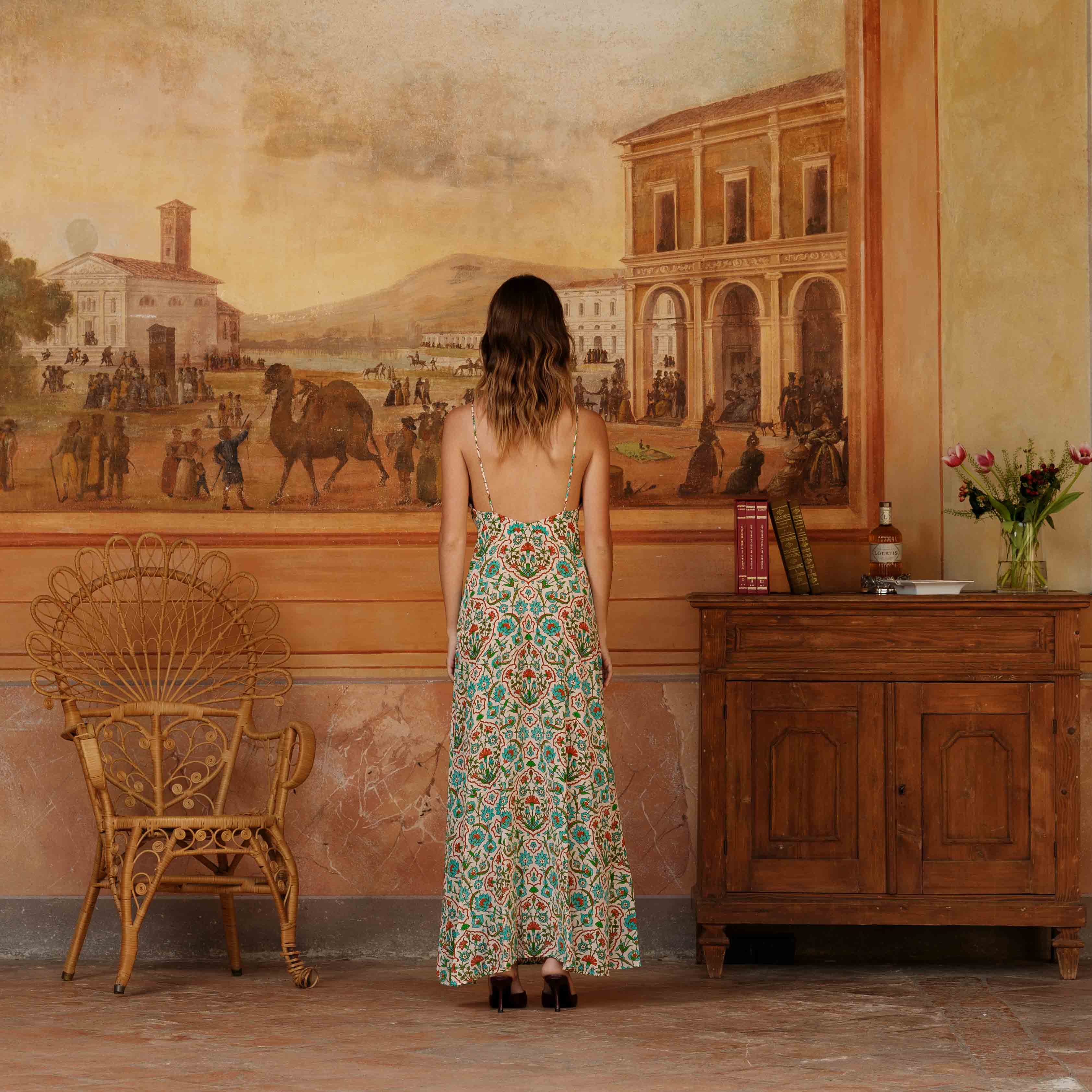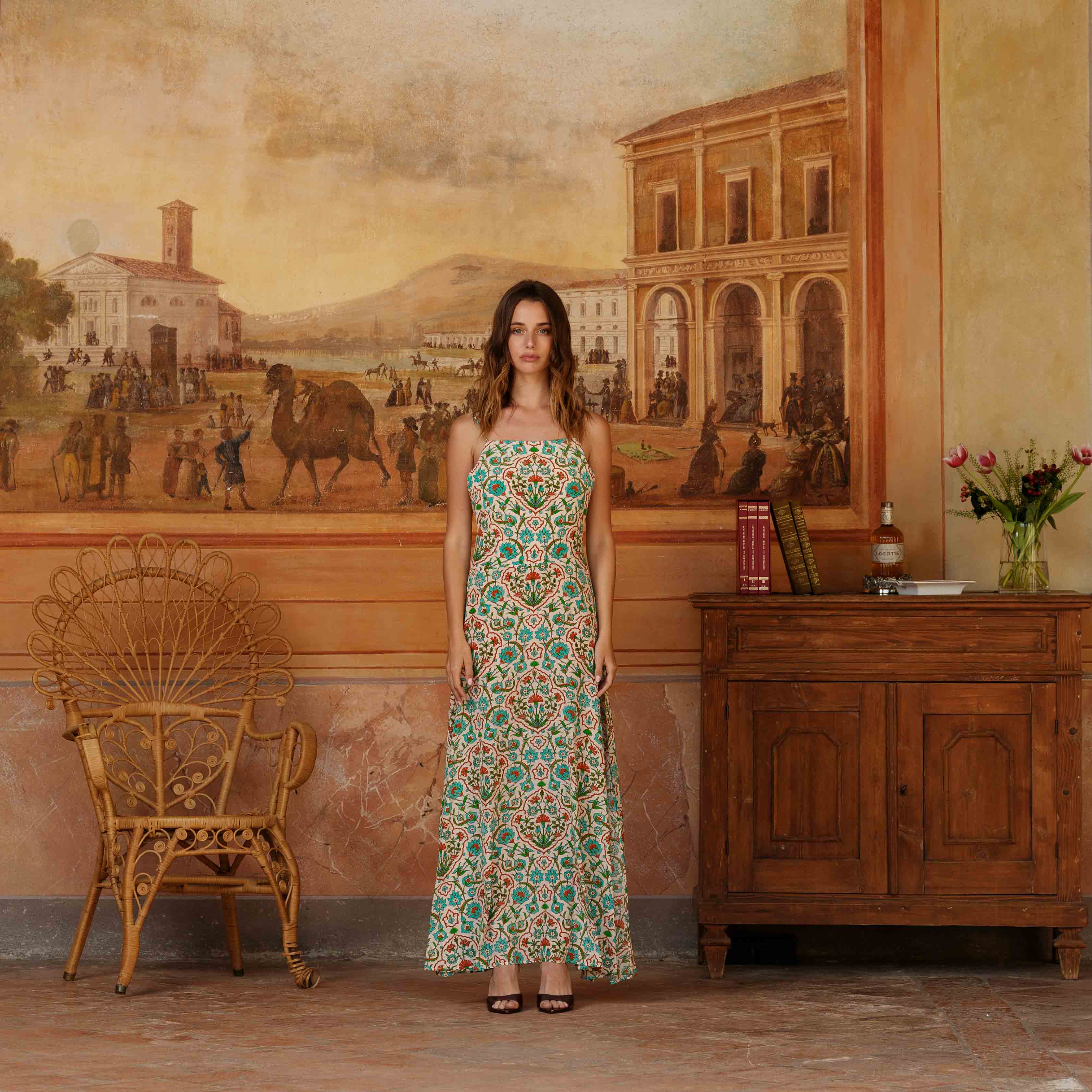 Pantamolle continua la sua sperimentazione per il guardaroba femminile. Questo abito da sera dal design essenziale, realizzato con un esclusivo crepe in seta, è caratterizzato dalle nuove stampe della collezione SS25. Il capo da donna perfetto per rispecchiarsi nell’eleganza e nel comfort senza tempo di Pantamolle.