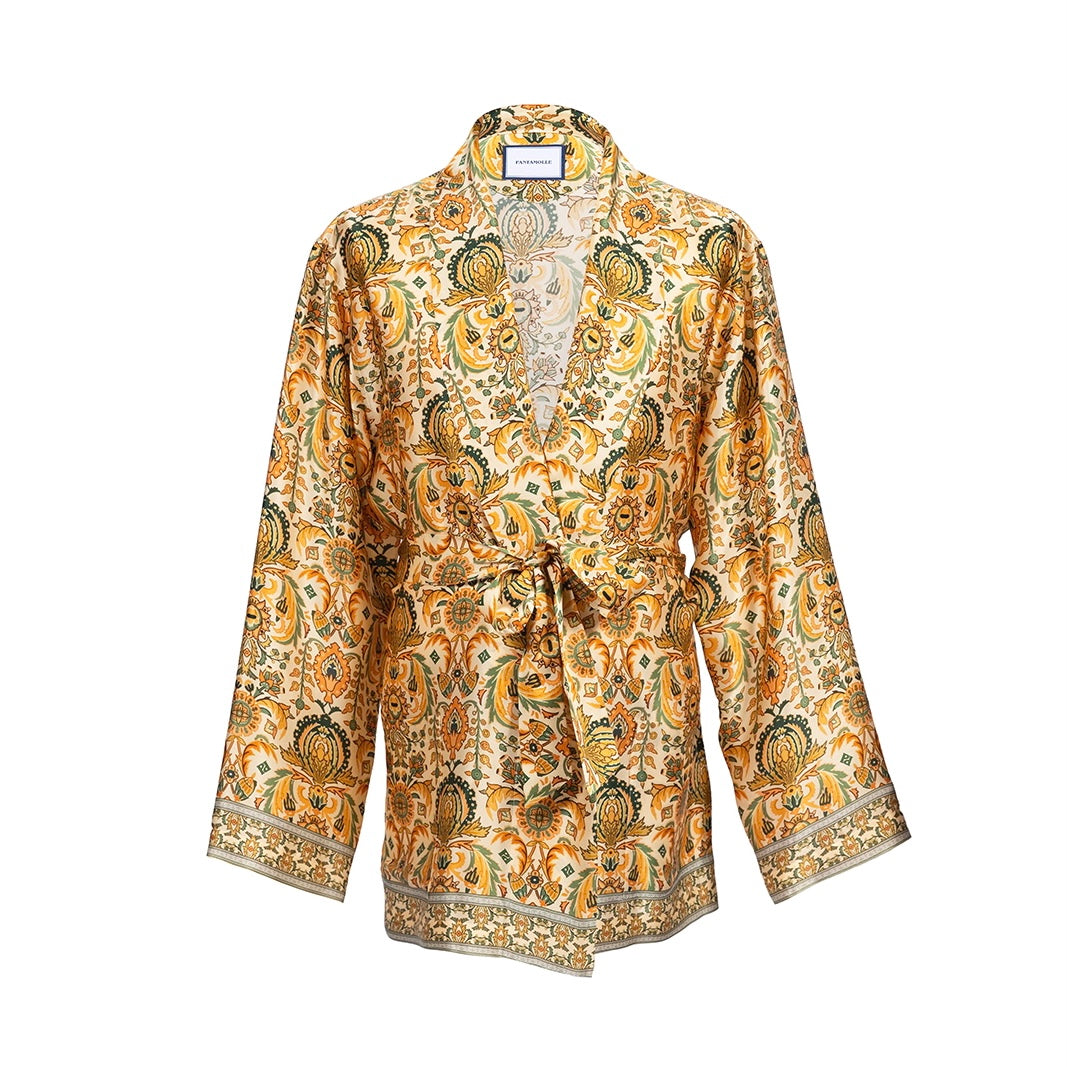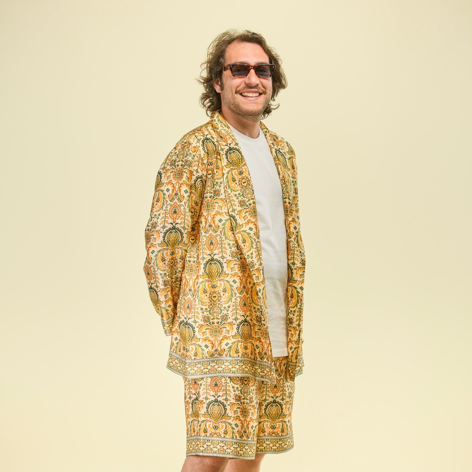 Per la nuova collezione SS24 Keep on Chasing Pantamolle ripropone l'iconica vestaglia unisex Baldassarre. Un capo perfetto per le fresche serate mondane.