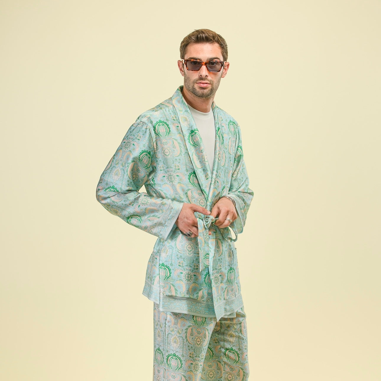 Per la nuova collezione SS24 Keep on Chasing Pantamolle ripropone l'iconica vestaglia unisex Baldassarre. Un capo perfetto per le fresche serate mondane.