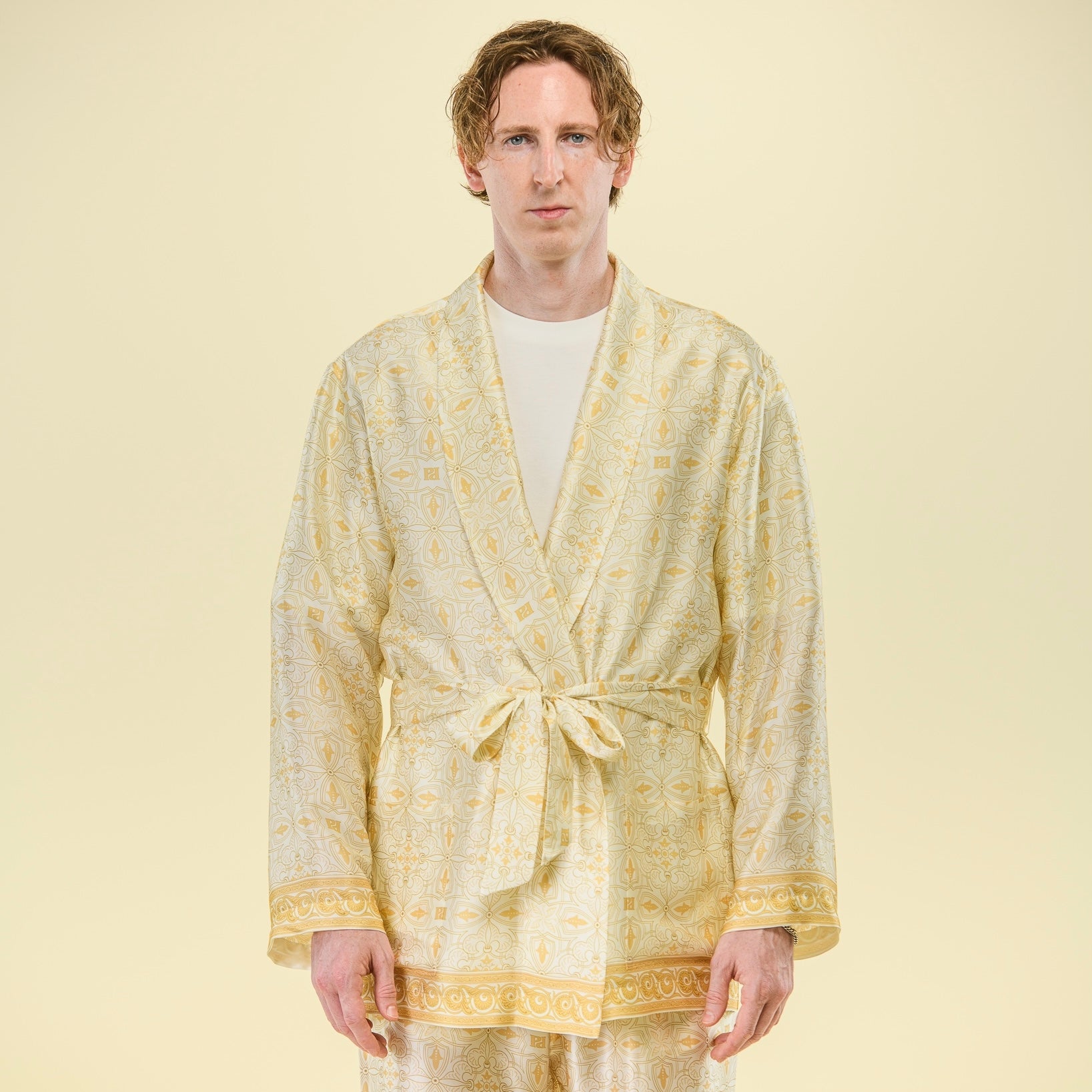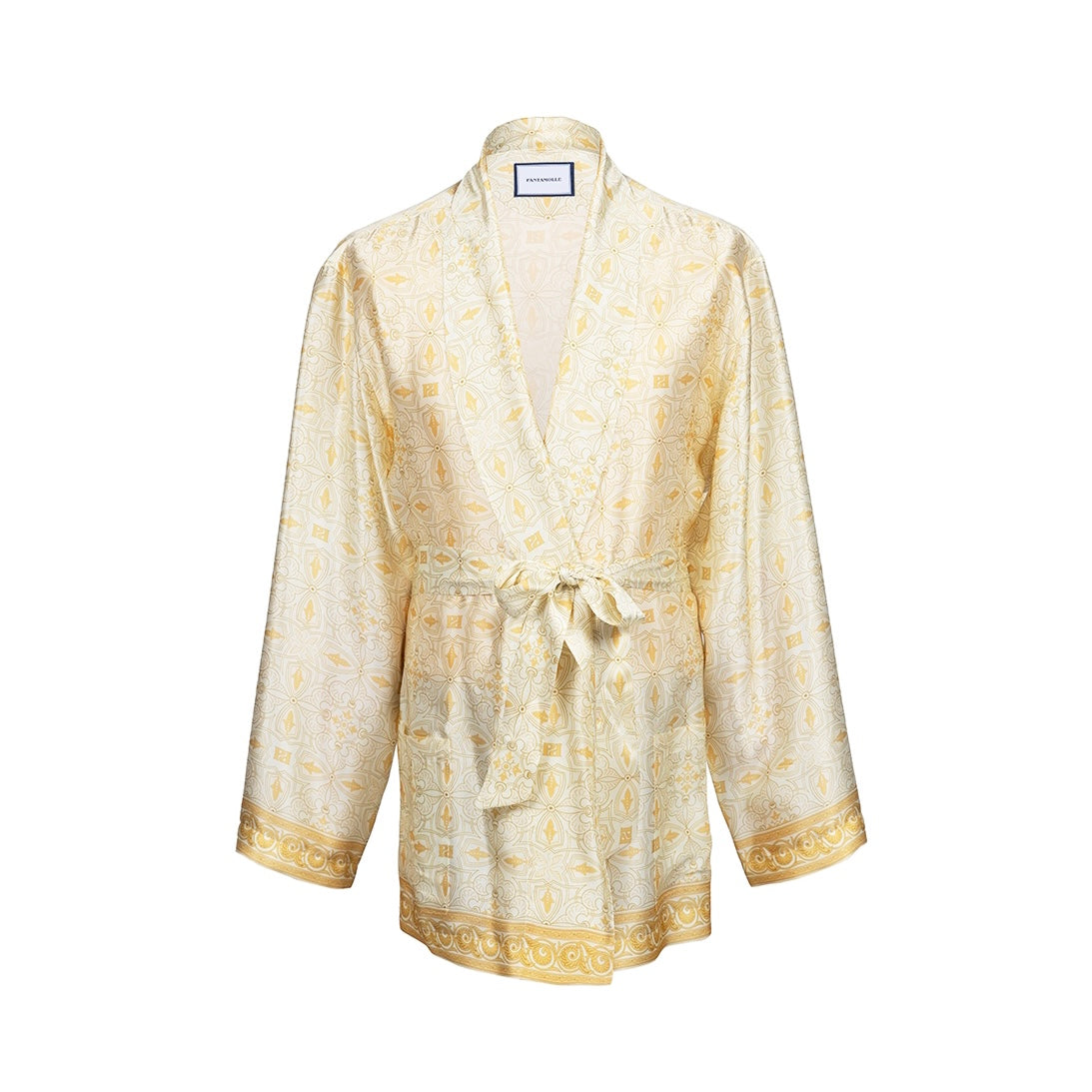 Per la nuova collezione SS24 Keep on Chasing Pantamolle ripropone l'iconica vestaglia unisex Baldassarre. Un capo perfetto per le fresche serate mondane.