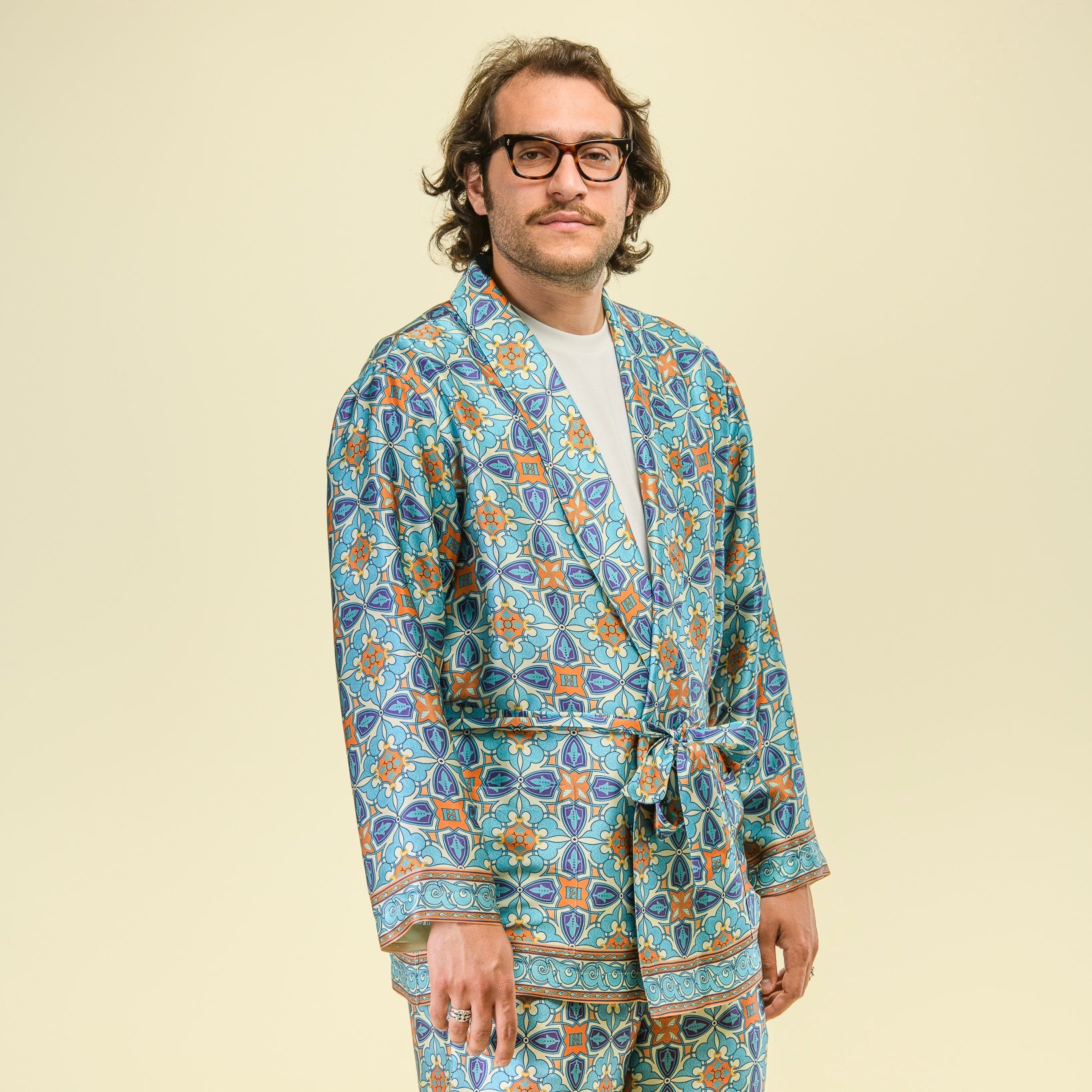 Per la nuova collezione SS24 Keep on Chasing Pantamolle ripropone l'iconica vestaglia unisex Baldassarre. Un capo perfetto per le fresche serate mondane.