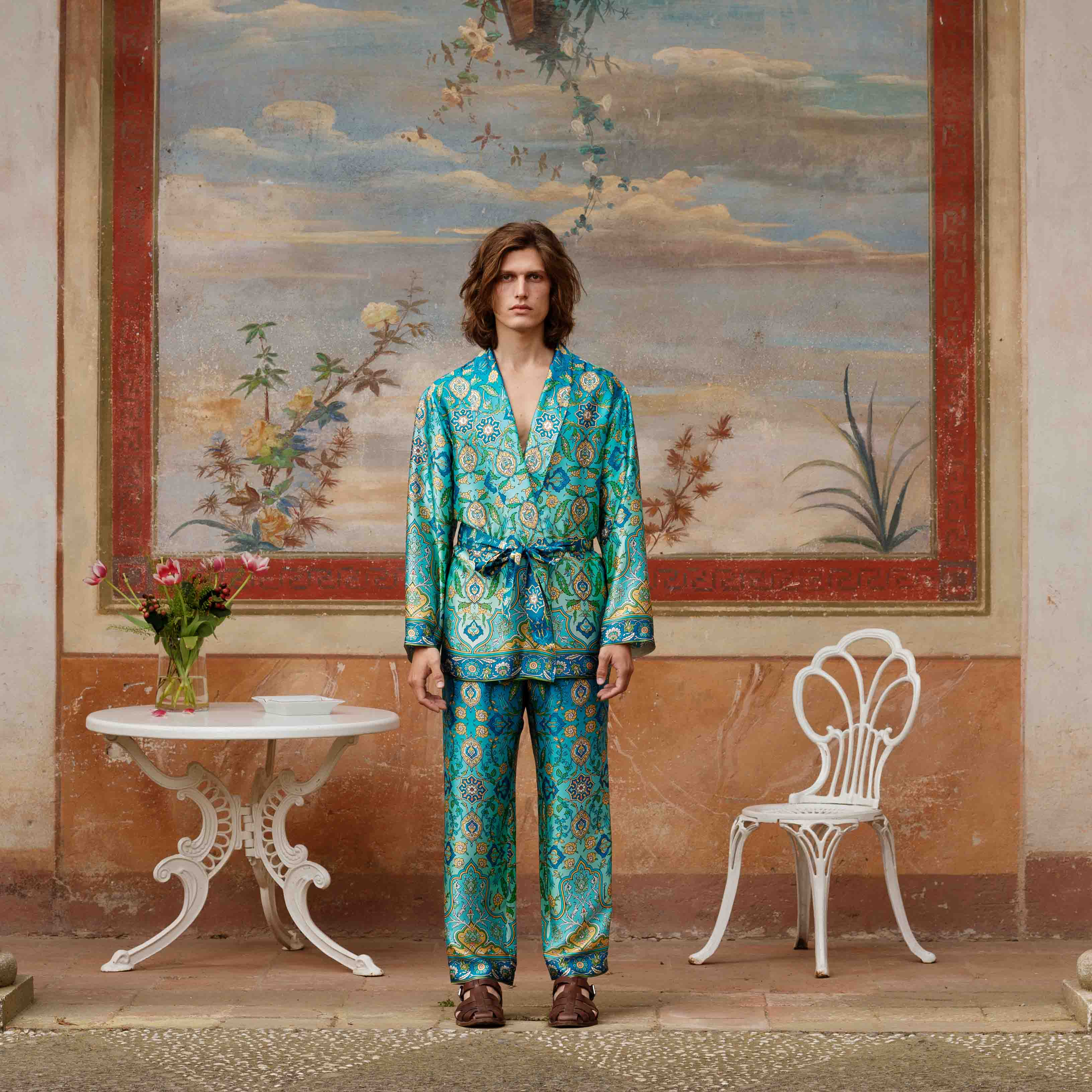 Per la nuova collezione SS25 Pantamolle ripropone l'iconica vestaglia unisex Baldassarre. Un capo perfetto per le fresche serate mondane.