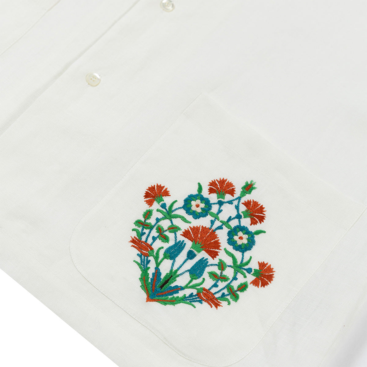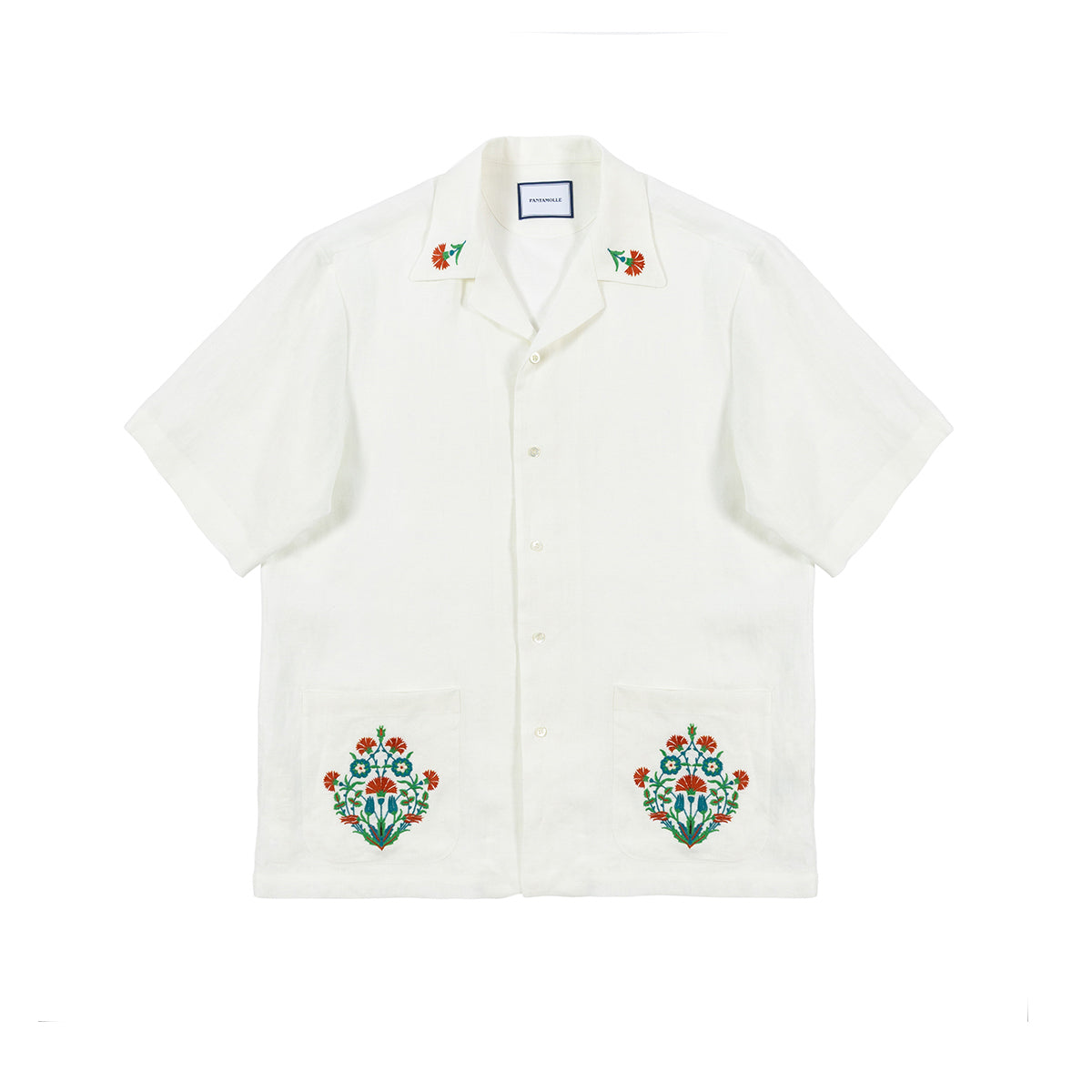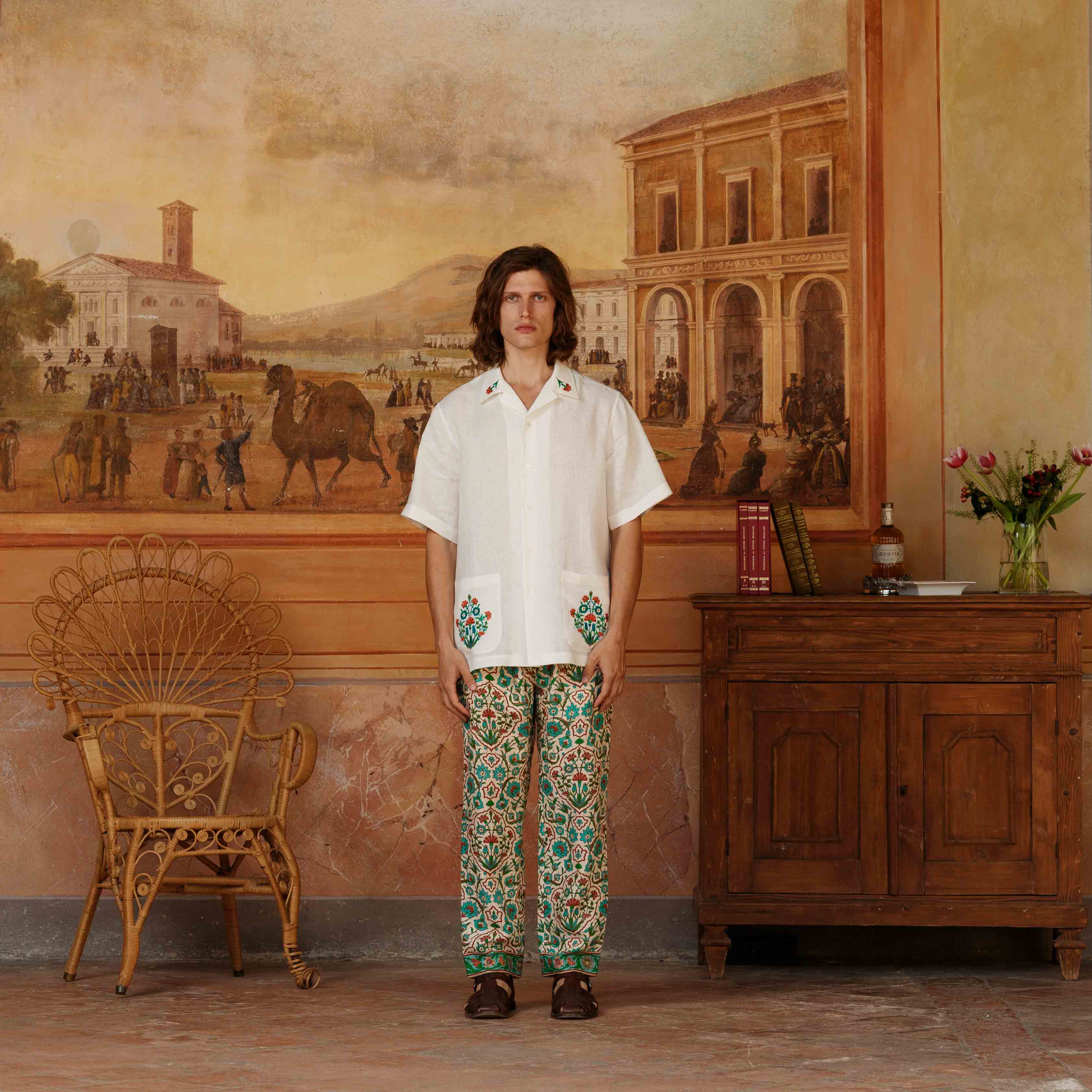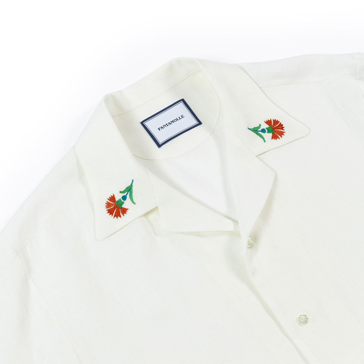 Pantamolle continua la sua sperimentazione nel mondo del lino per realizzare dei completi perfetti per le calde giornate estive. Realizzato con un confortevole lino bianco, il nostro iconico modello bowling è arricchito da ricami sofisticati ispirati al nuovo design Sketes.