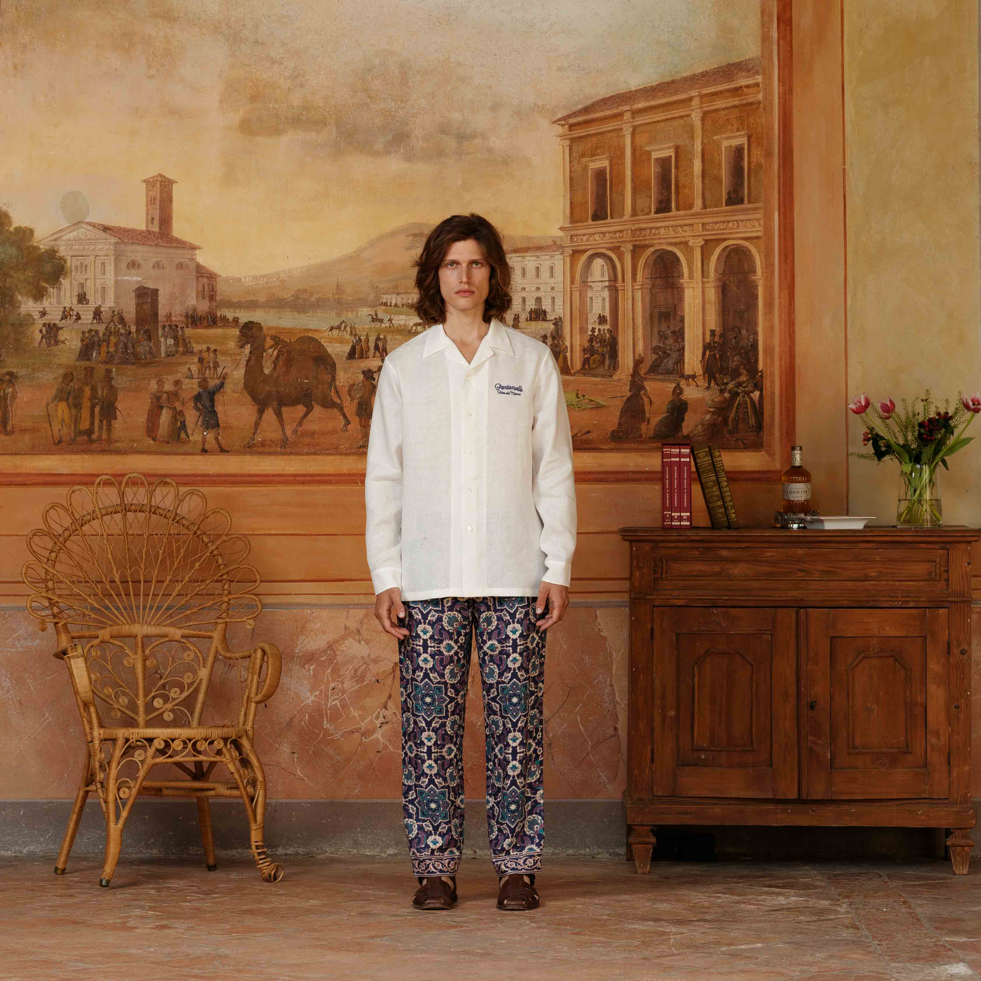 Pantamolle continua la sua sperimentazione nel mondo del lino per realizzare dei completi perfetti per le calde giornate estive. Realizzato con un confortevole lino bianco, questo nuovo modello celebra il nostro iconico store a Forte dei Marmi.