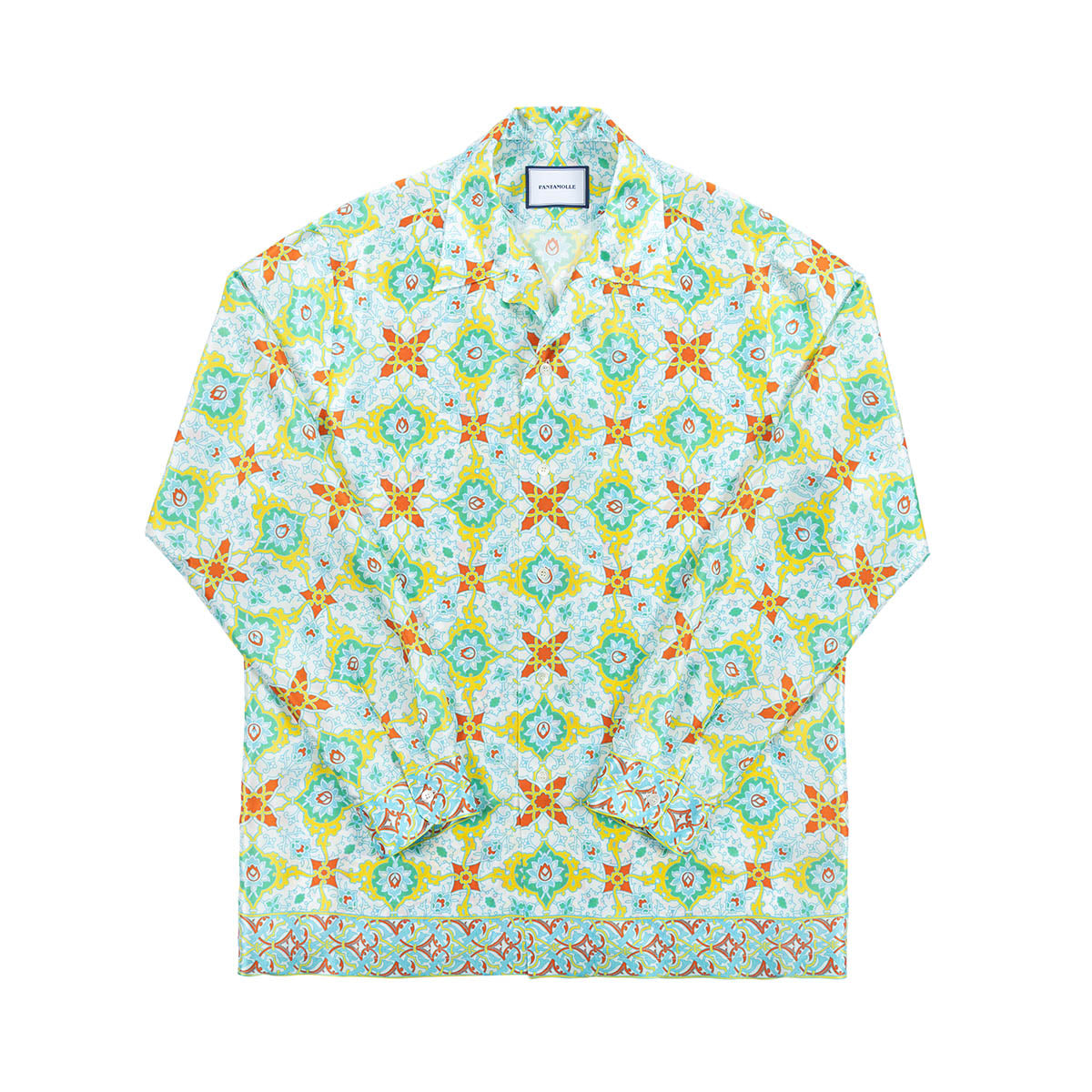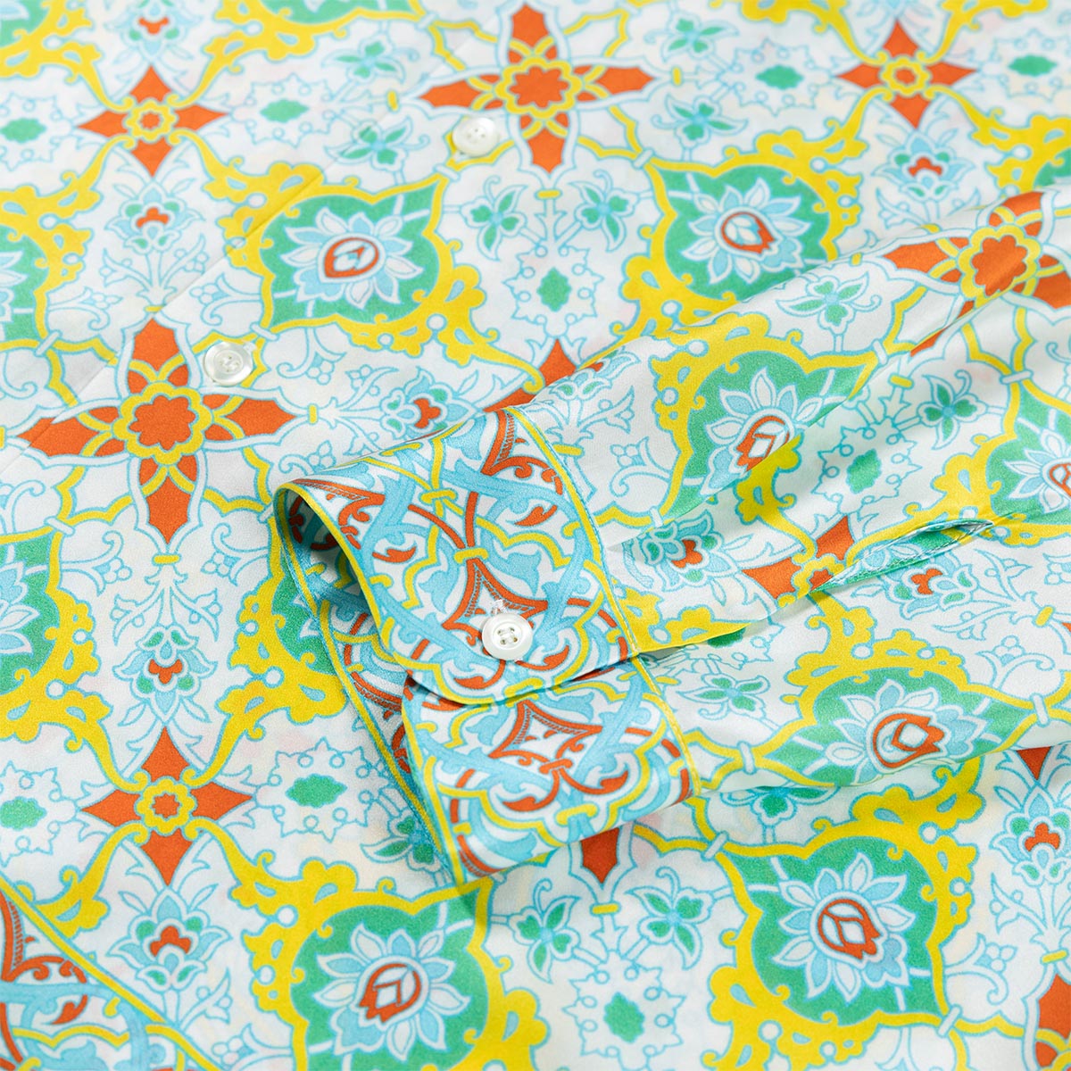 Realizzata con un esclusivo raso in seta, questa camicia è animata dal nuovo design Gajardo: elementi geometrici si ripropongono con simmetria e precisione creando una fantasia semplice e raffinata.