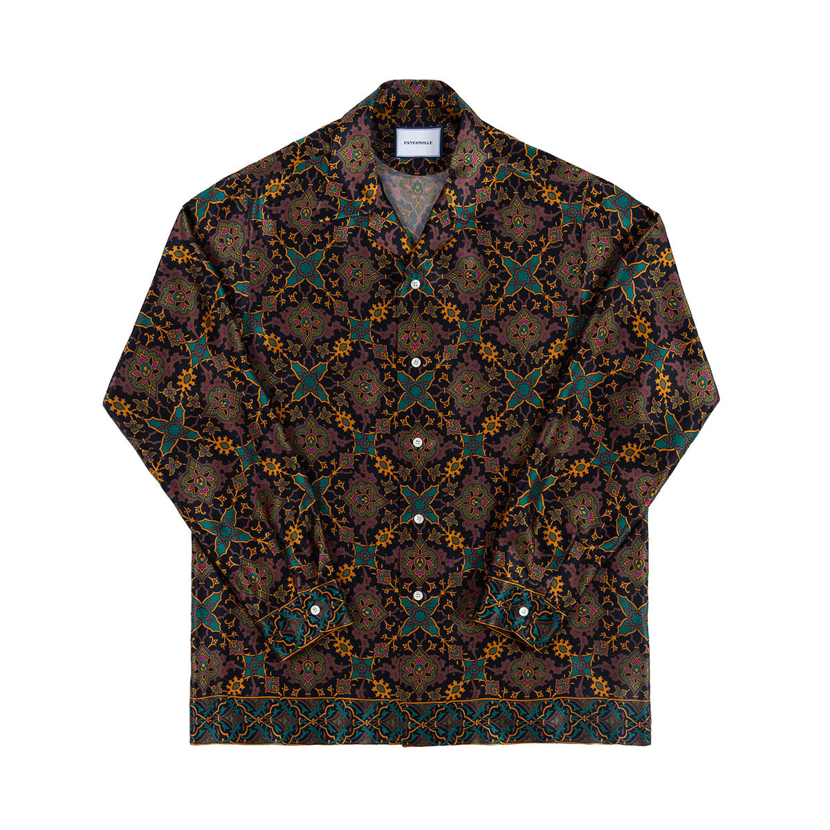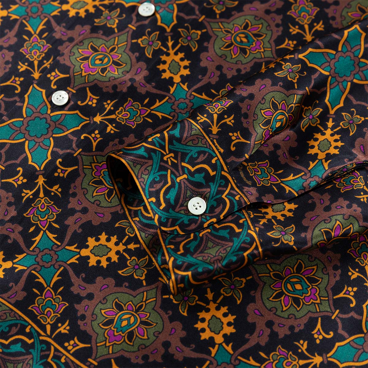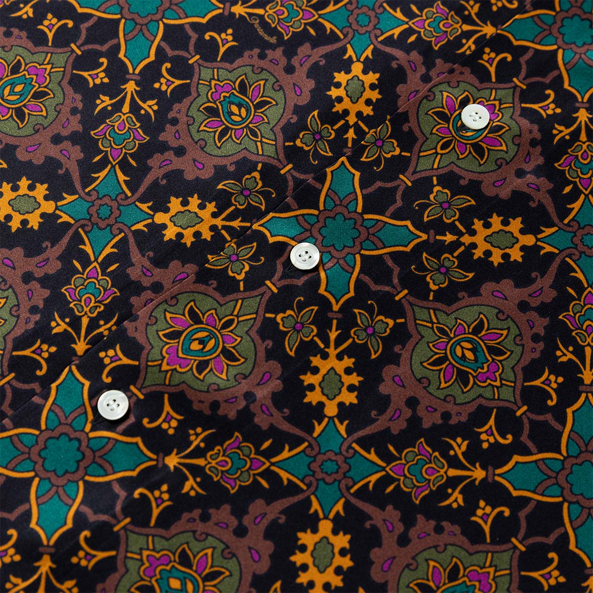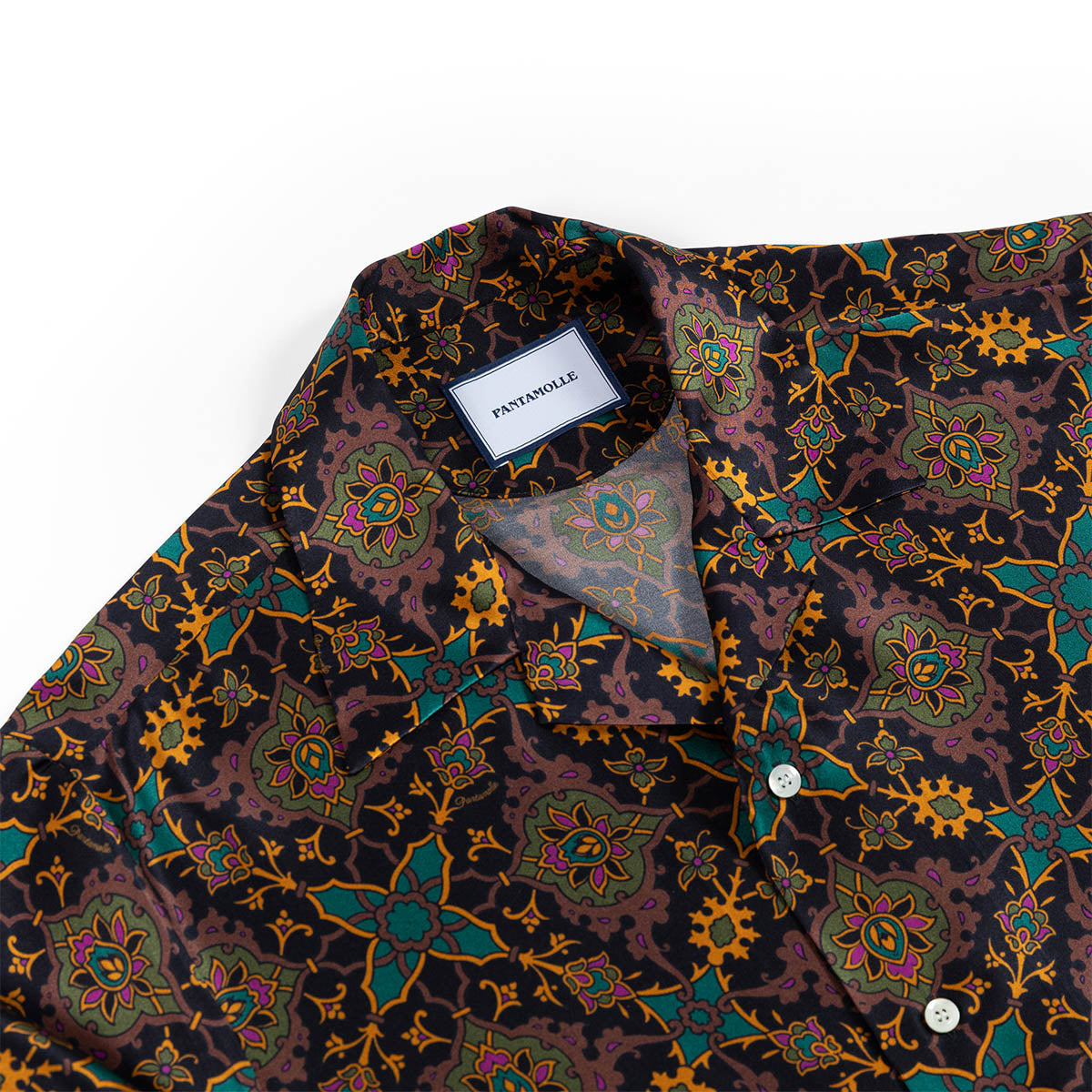 Realizzata con un esclusivo raso in seta, questa camicia è animata dal nuovo design Gajardo: elementi geometrici si ripropongono con simmetria e precisione creando una fantasia semplice e raffinata.