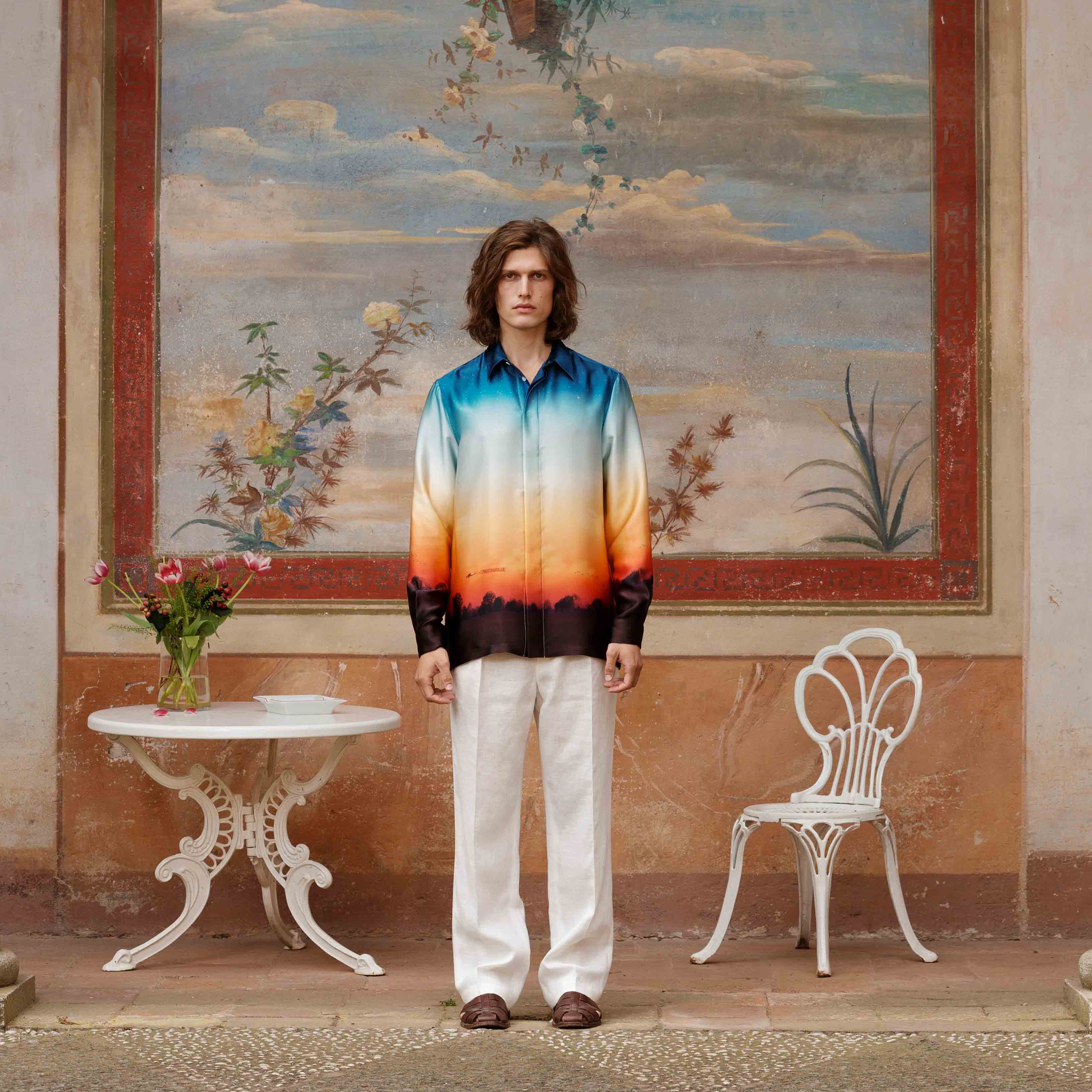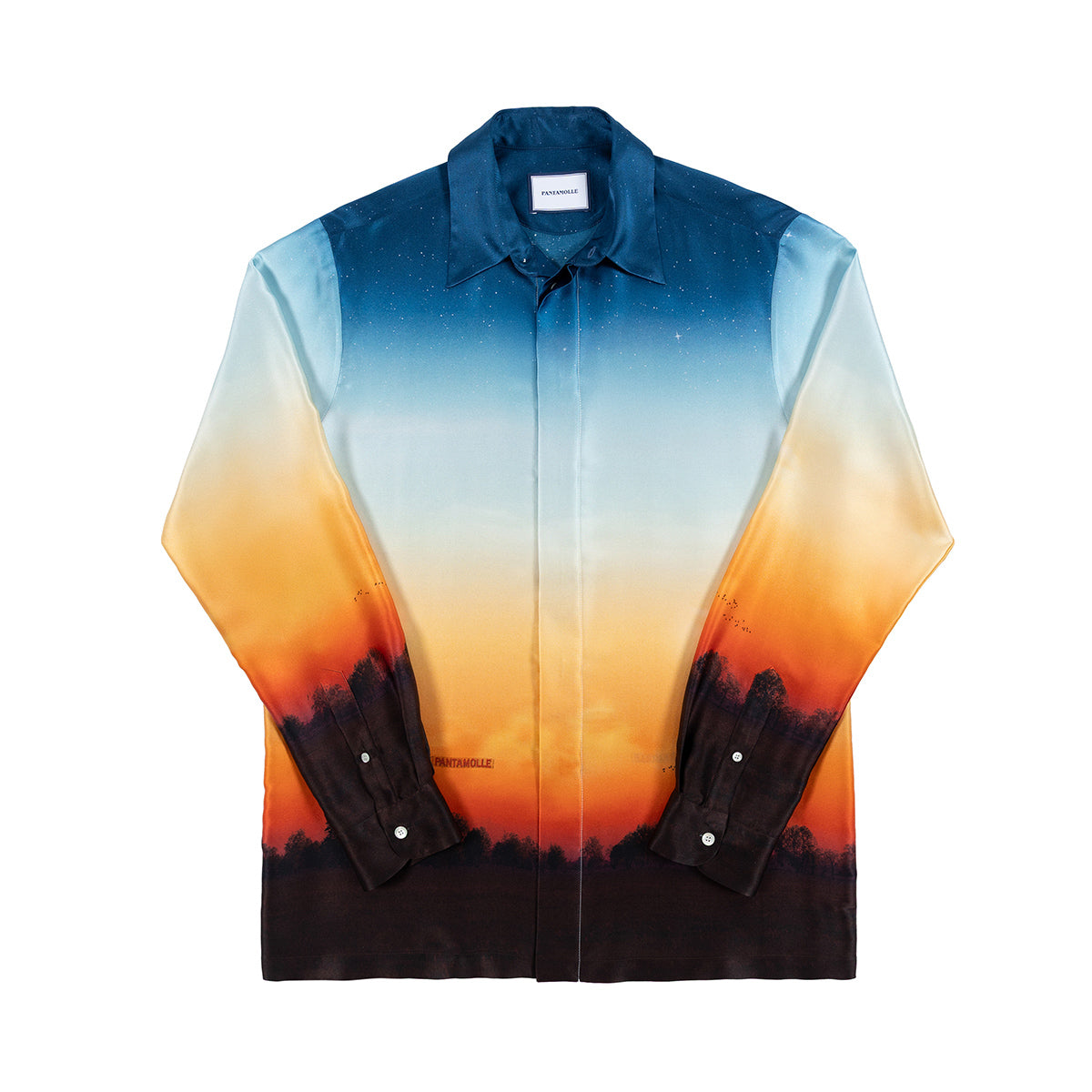 Pantamolle continua la sperimentazione nel mondo della camiceria in seta con nuovi modelli e piazzamenti esclusivi. Questa camicia rappresenta l'amore e l'orgoglio verso il nostro paese: Dello. Un tramonto estivo della bassa pianura padana viene riproposto su questa camicia, creando un capo perfetto per i veri Pantamolle Lovers.