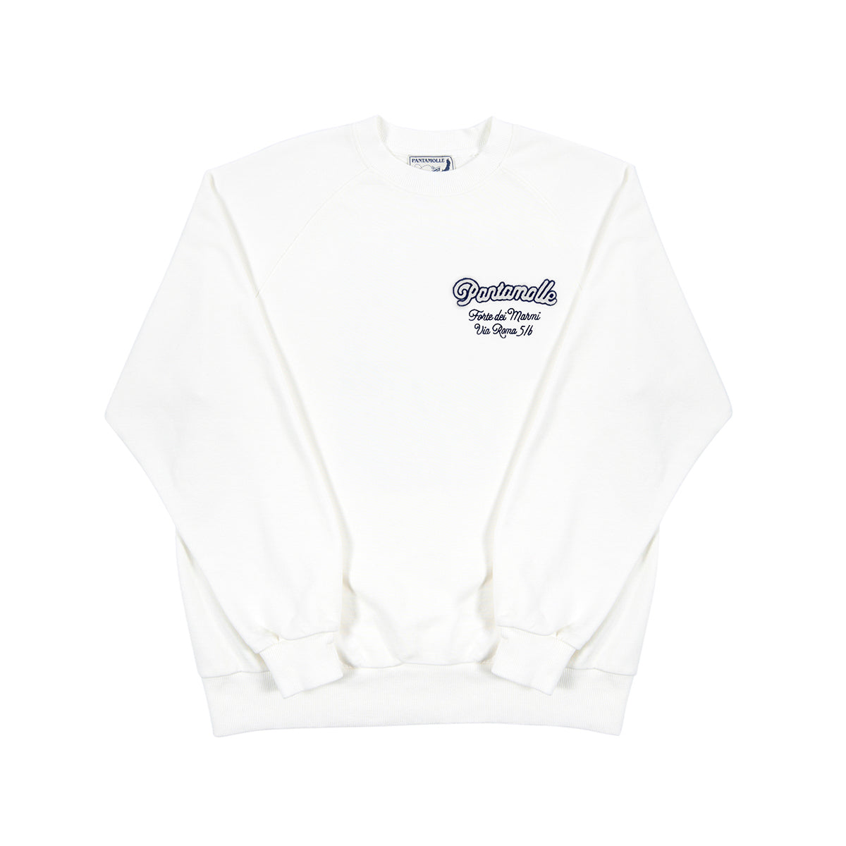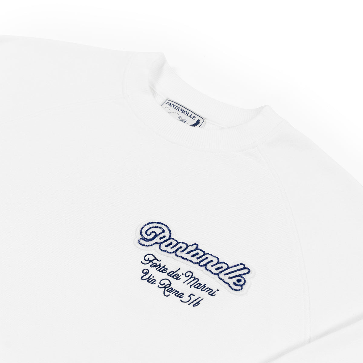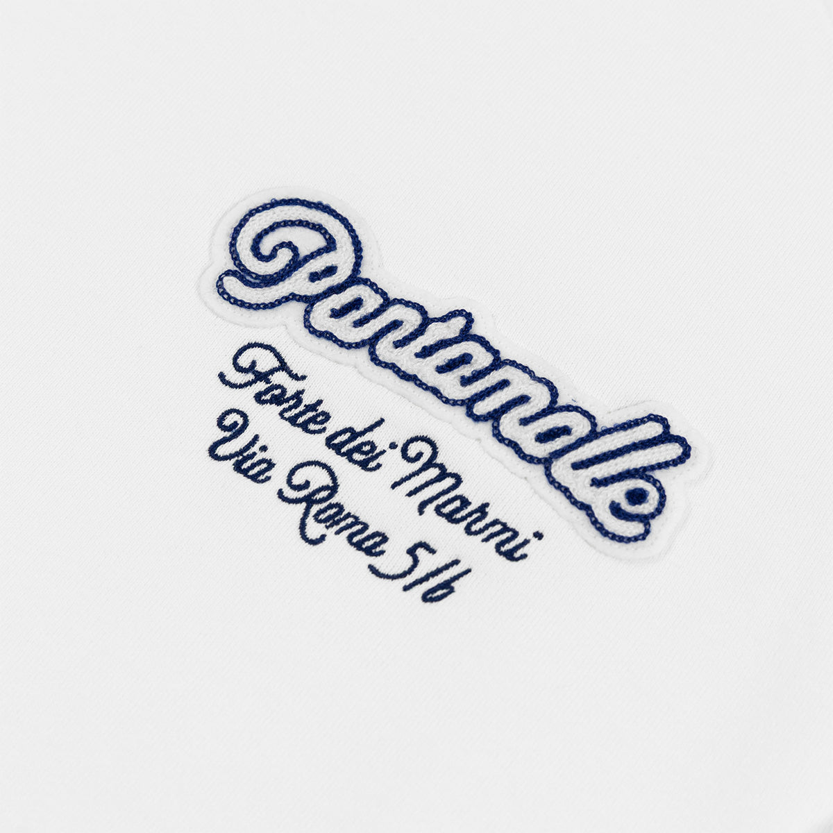 Per la nuova collezione SS25 Pantamolle sperimenta ricami e patch per arricchire una serie di nuovi capi ready-to-wear. Realizzata con l’esclusivo jersey giapponese “Azuma", questa felpa celebra il nostro iconico store di Forte dei Marmi.