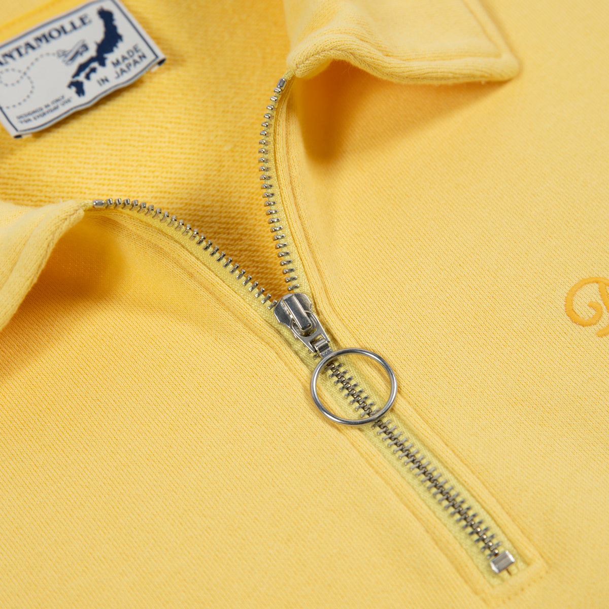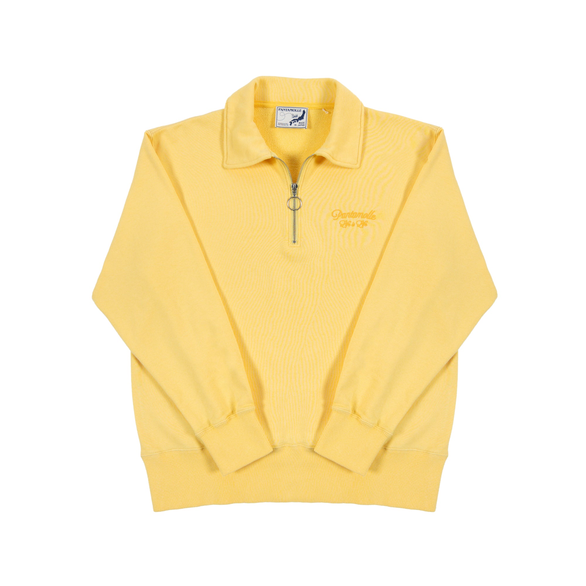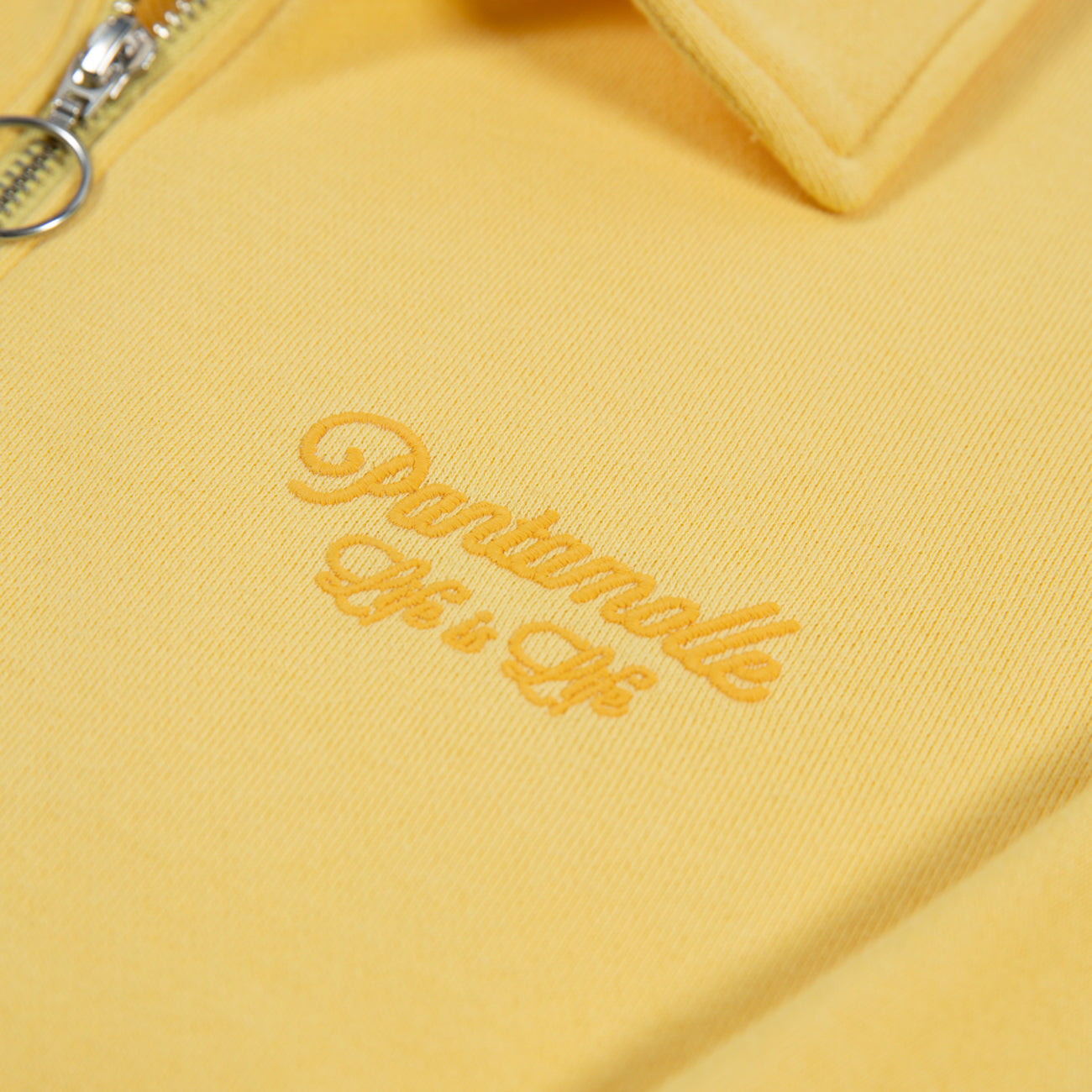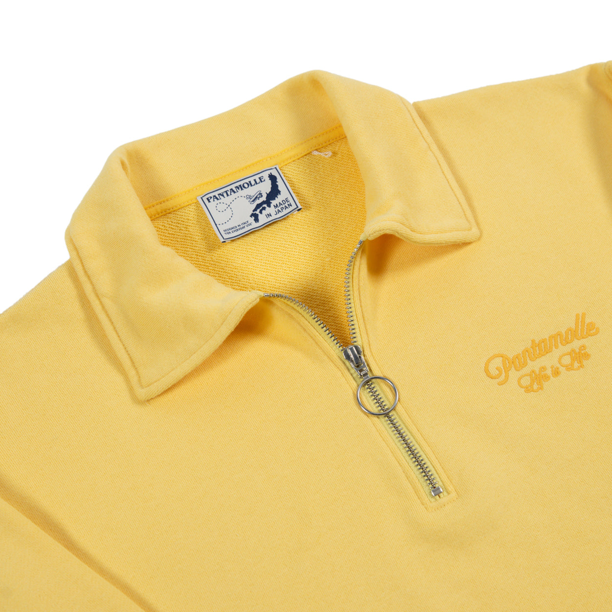 Realizzata interamente a Tokyo, questa felpa con mezza zip è arricchita da un elegante ricamo tono su tono che riporta lo slogan di Pantamolle: Life is Life!