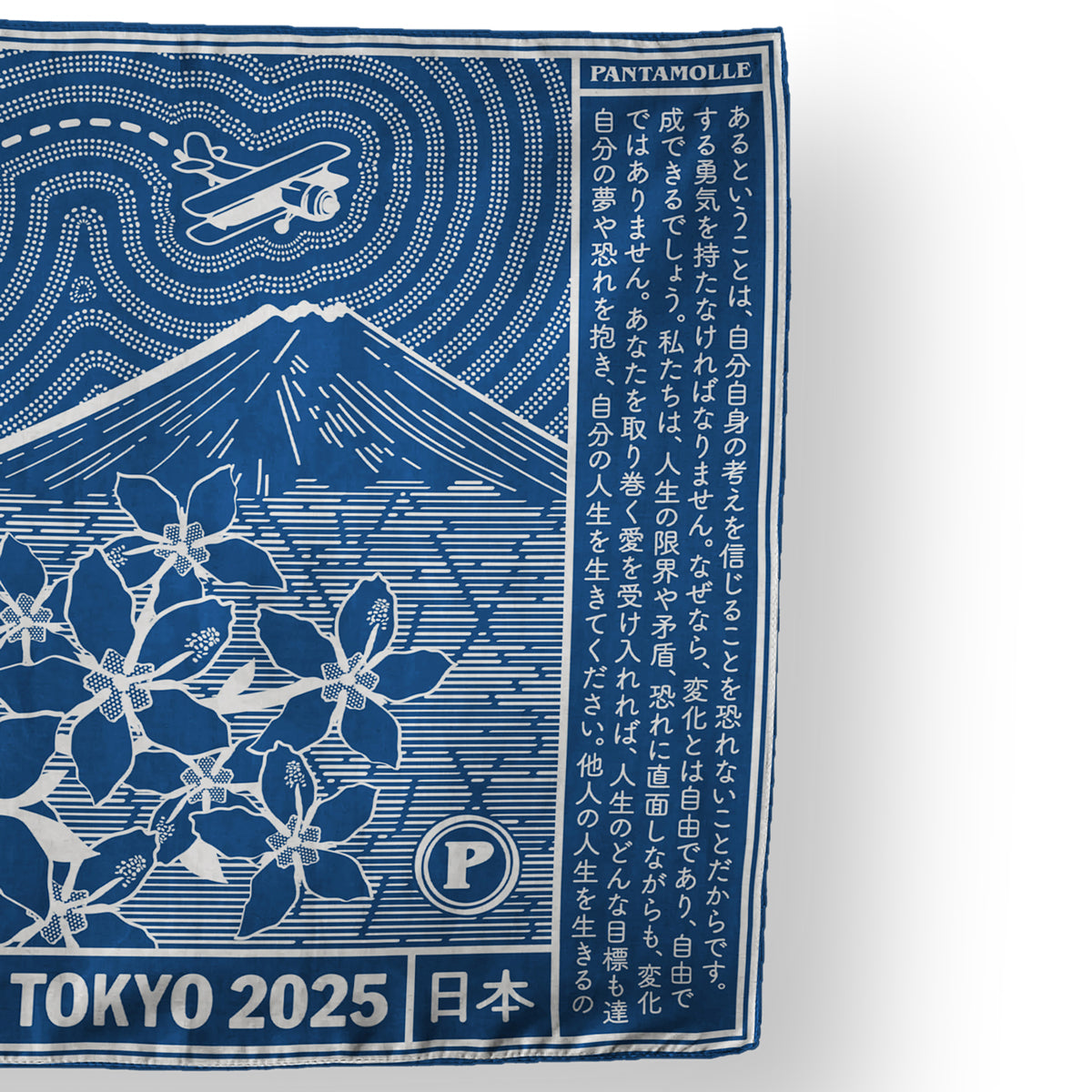 Lo slogan "自分の人生を生きろ" accompagna molti campi di questa capsule e rappresenta il vero spirito di Pantamolle: "Life is Life”, mentre il Manifesto di Pantamolle viene riportato il lingua giapponese sul lato destro di questo foulard ideato in Giappone e realizzato in Italia.