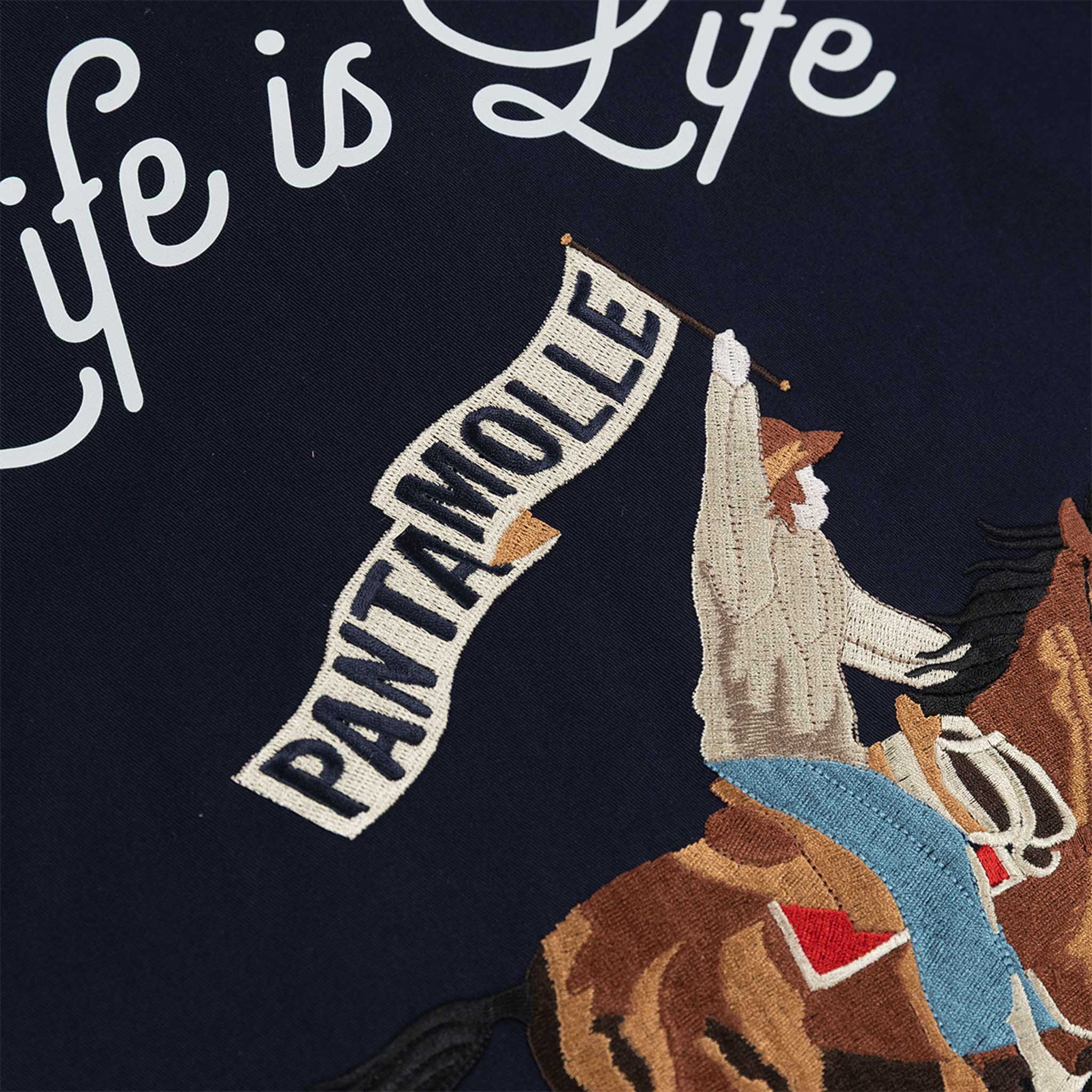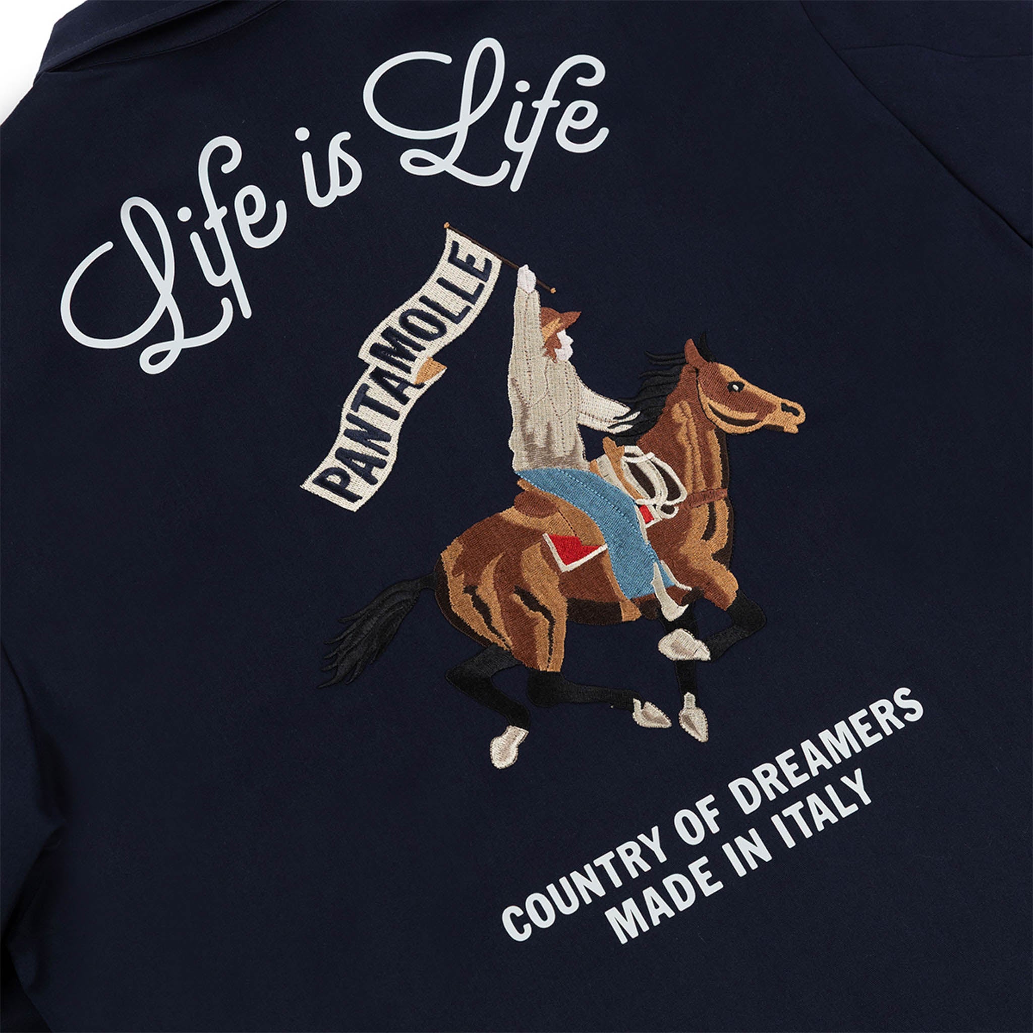 Questo capo rappresenta l'emblema dello spirito country di Pantamolle. Realizzata in cotone, questa giacca foderata dal taglio essenziale, è arricchita da stampe e ricami esclusivi.