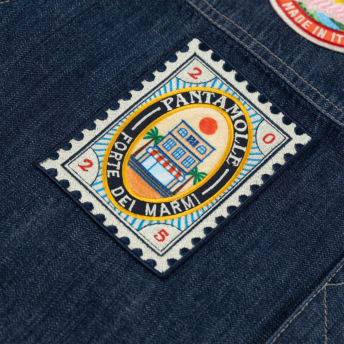 Pantamolle continua la sua sperimentazione nel mondo del denim con nuovi colori e lavaggi esclusivi. Questa giacca, realizzata con un denim leggero, è arricchita da una serie di patch e ricami ispirati al mondo Pantamolle. È ideale da abbinare al nuovo Pantamolle Dream per creare un look estivo, fresco e raffinato.