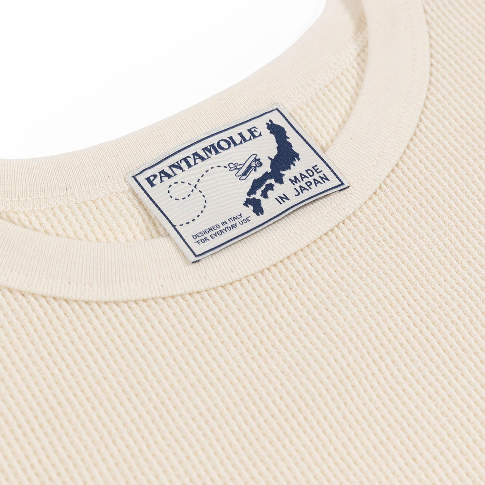 Pantamolle viaggia in Giappone per riscoprire materie prime e manifatture dall’alto valore aggiunto. Questa t-shirt a manica lunga rappresenta un elemento imprescindibile in ogni guardaroba. Il tessuto waffle garantisce un comfort esclusivo e il taglio essenziale rende questo capo un evergreen.