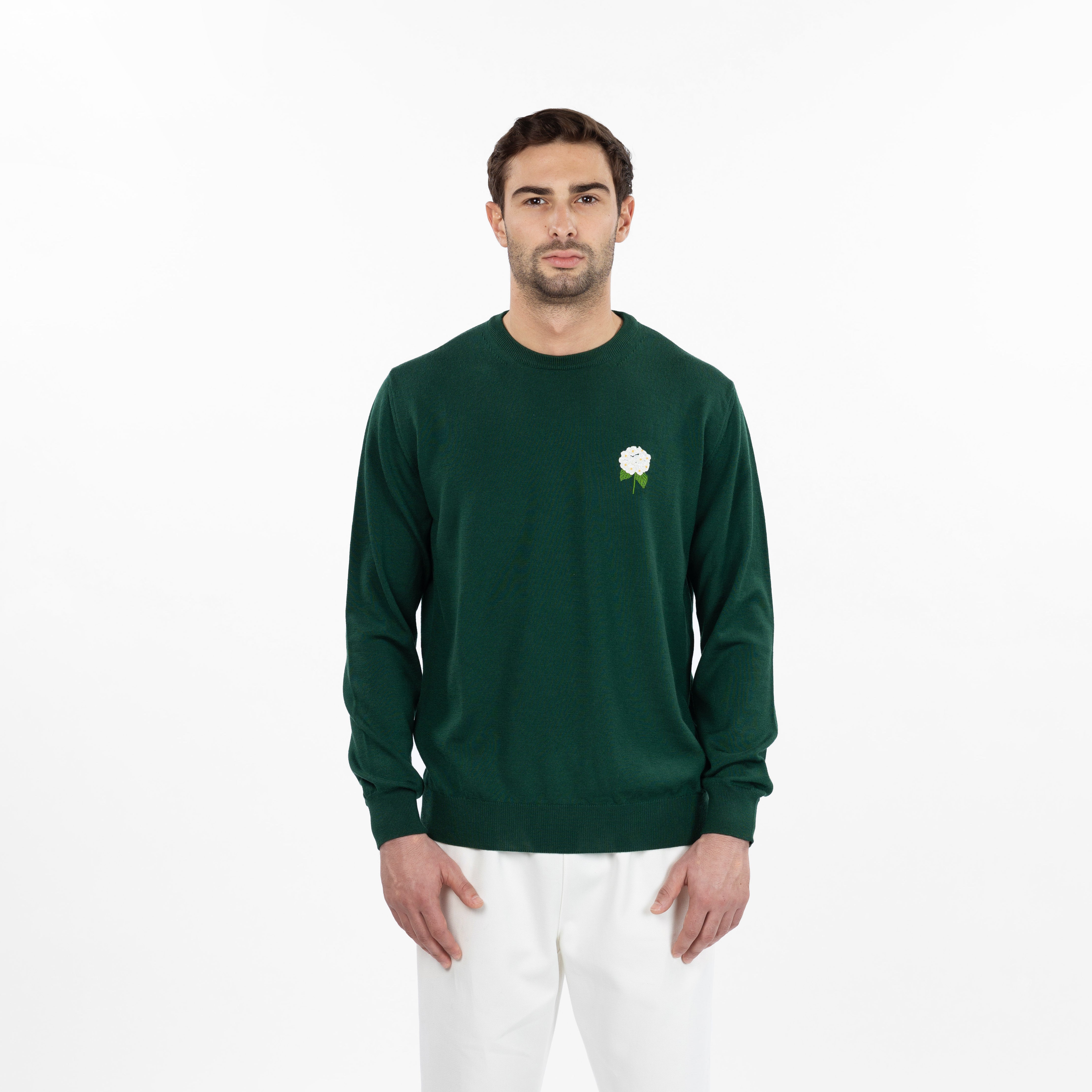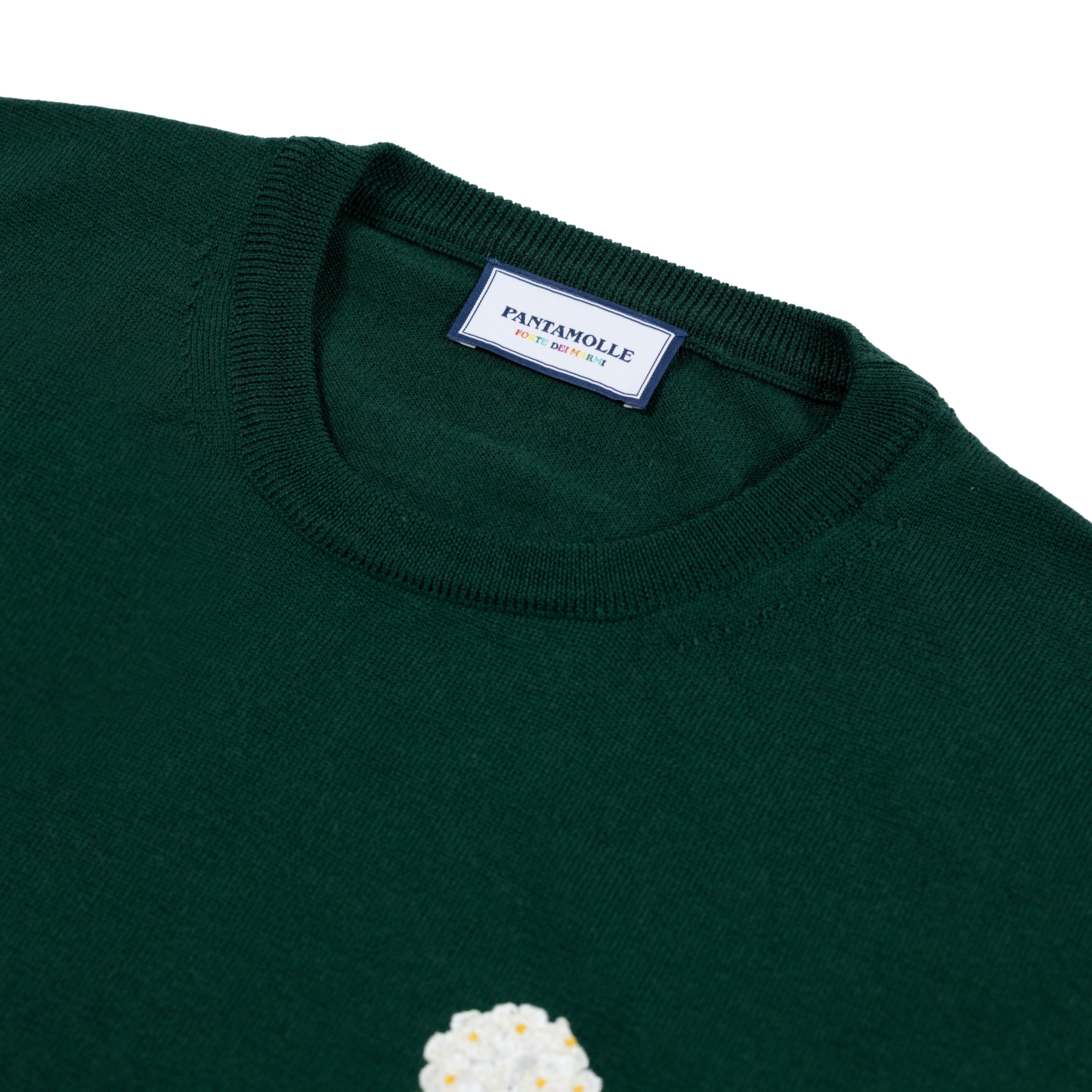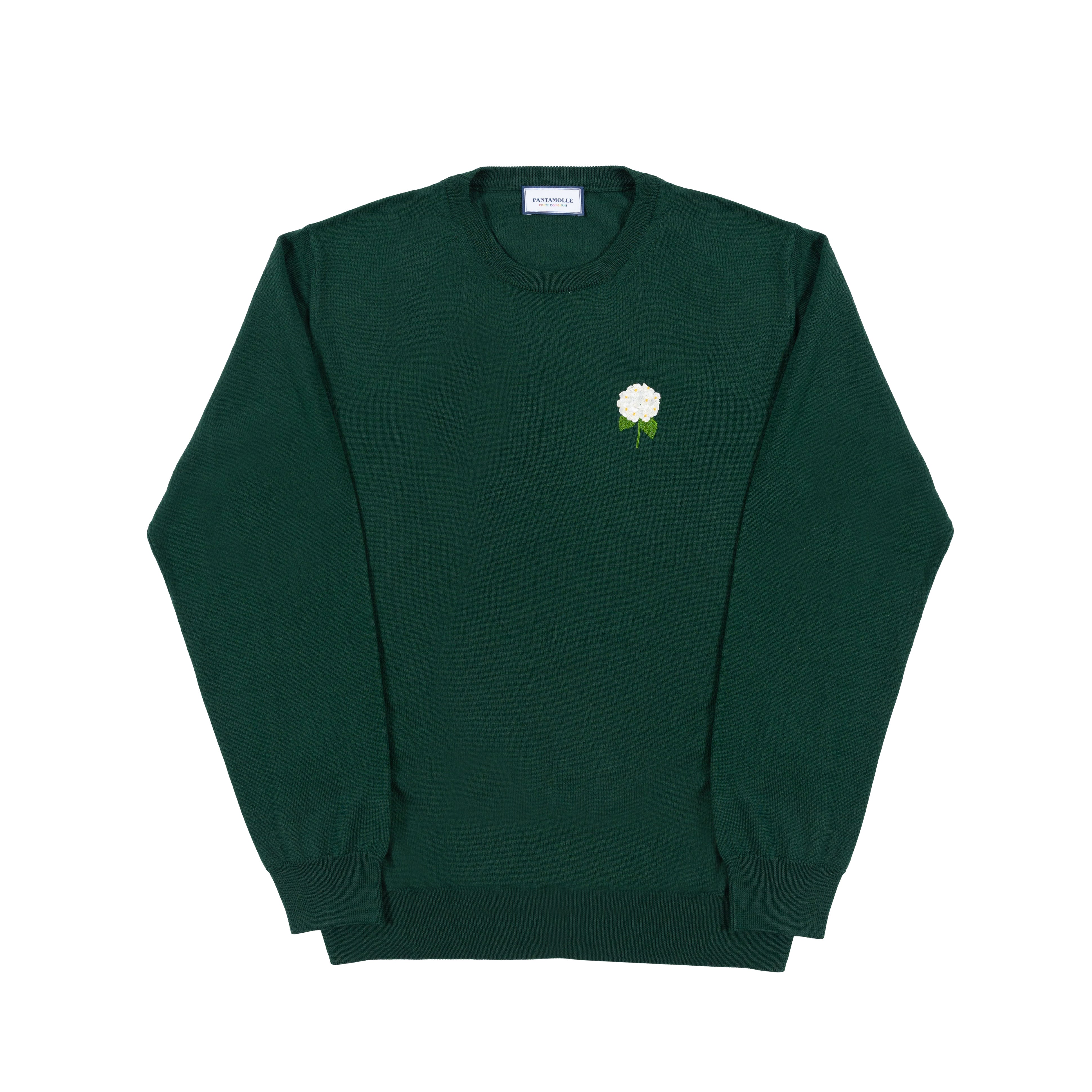 Realizzato con una fine triplofilo in lana merino, questo maglione capo presenta una vestibilità regolare ed è arricchito dall'iconico ricamo ortensia di Pantamolle.