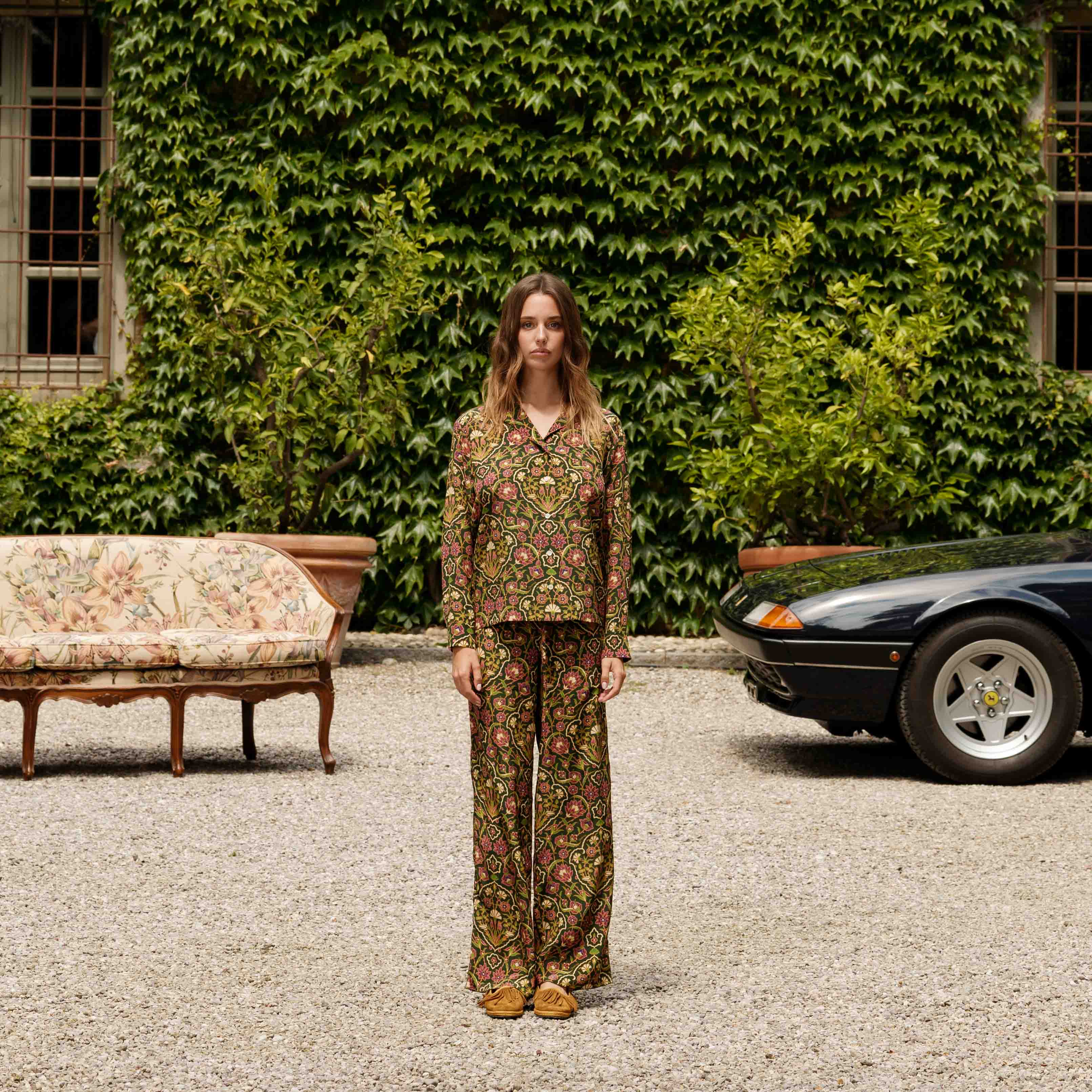 Per la nuova collezione SS25 Pantamolle ripropone l’iconico completo Sissi. Realizzato con un esclusivo crepe in seta, il Pantamolle Sissi esprime lo spirito eclettico del brand creando un capo che abbraccia l’idea di un’eleganza senza regole.