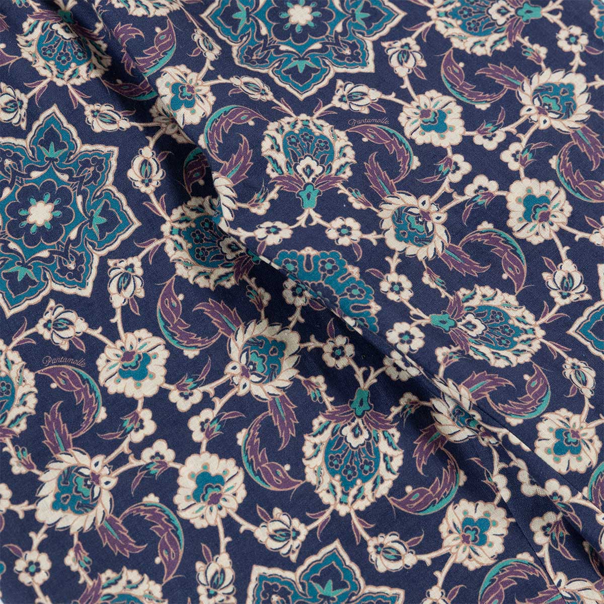 Realizzato con un confortevole lino, questo capo è animato dal nuovo design Monfardì: rosoni geometrici ed elementi naturali si uniscono per creare un fantasia precisa e armoniosa.