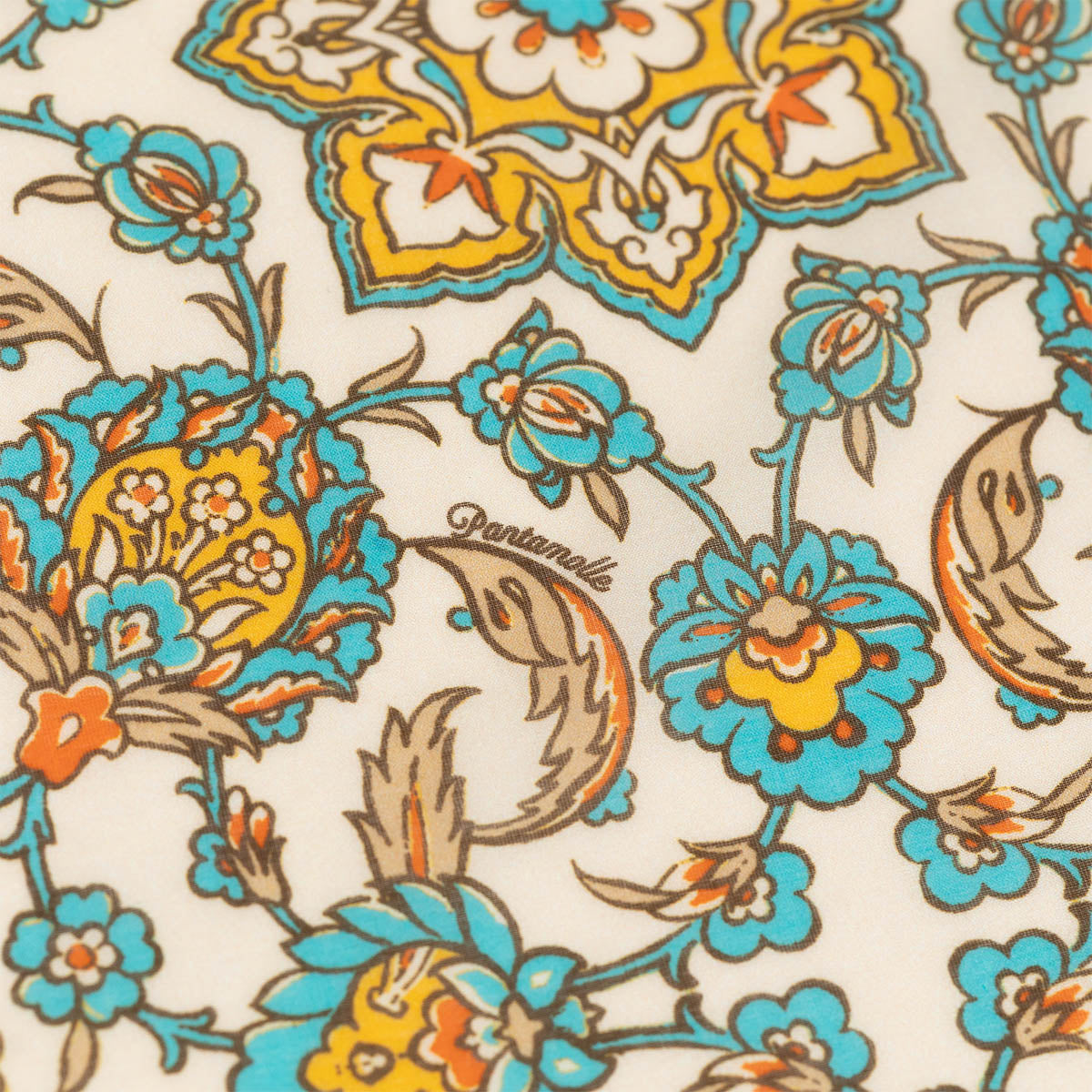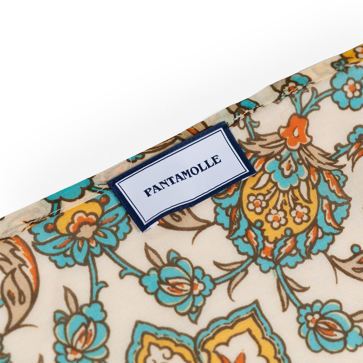 Per la stagione estiva, Pantamolle propone una serie di outfit adatti alla vita da mare. Realizzato con un fresco voile di cotone, questo pareo è animato dal nuovo deisgn Monfardì.