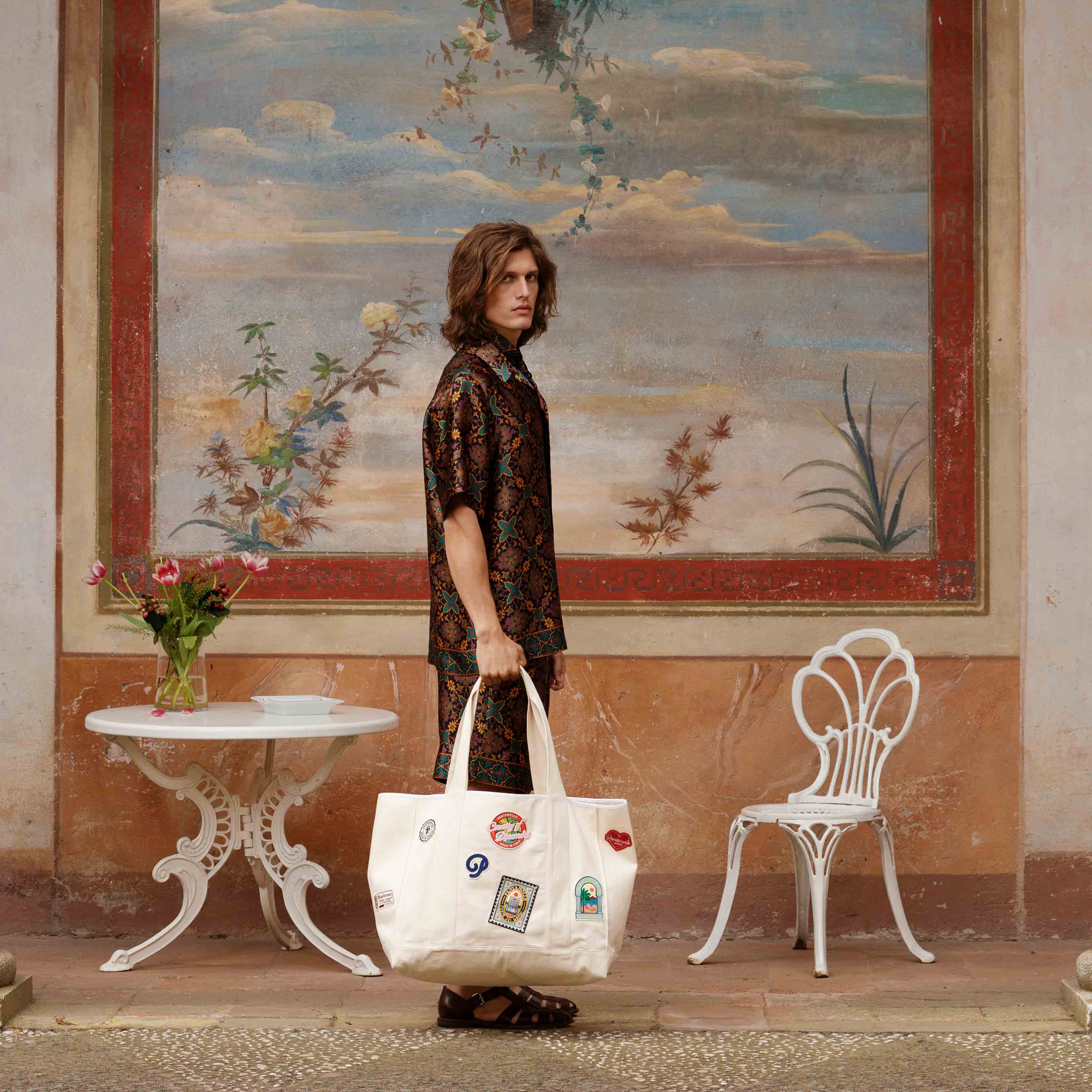 Pantamolle realizza per la nuova collezione SS25 una serie di accessori da mare dalla forte personalità. Realizzata con un resistente cotone organico, questa bag estiva è arricchita da ricami e patch che celebrano il mondo Pantamolle.